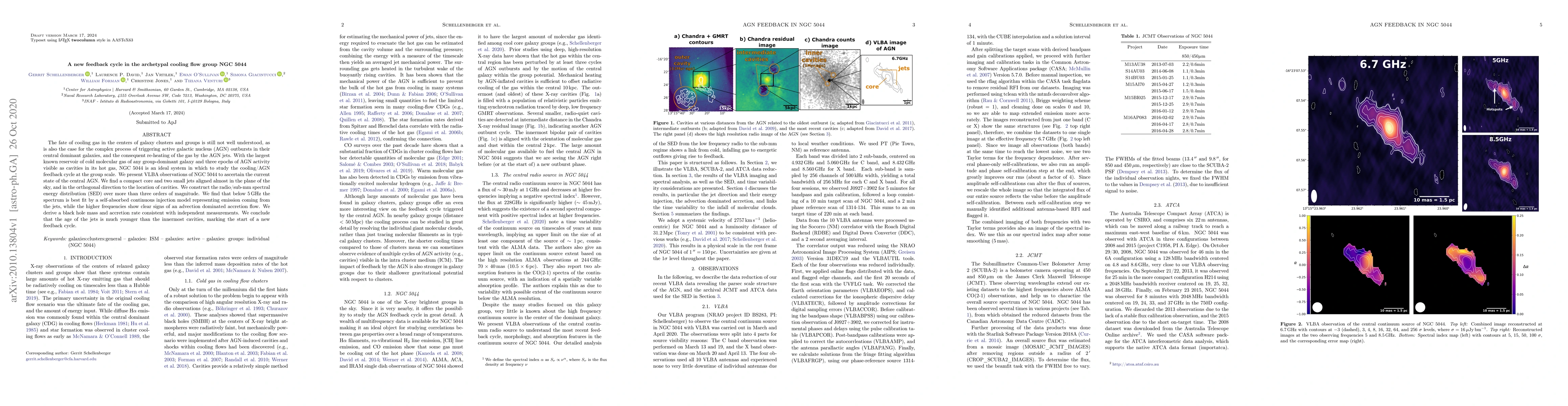 This paper investigates the cooling gas dynamics and AGN feedback in the galaxy group NGC 5044 using VLBA observations, revealing a compact AGN core and jets, and suggesting a new feedback cycle initiated by the younger jets compared to older cavities. The spectral analysis supports a self-absorbed emission model for the jets and an advection-dominated accretion flow at higher frequencies.