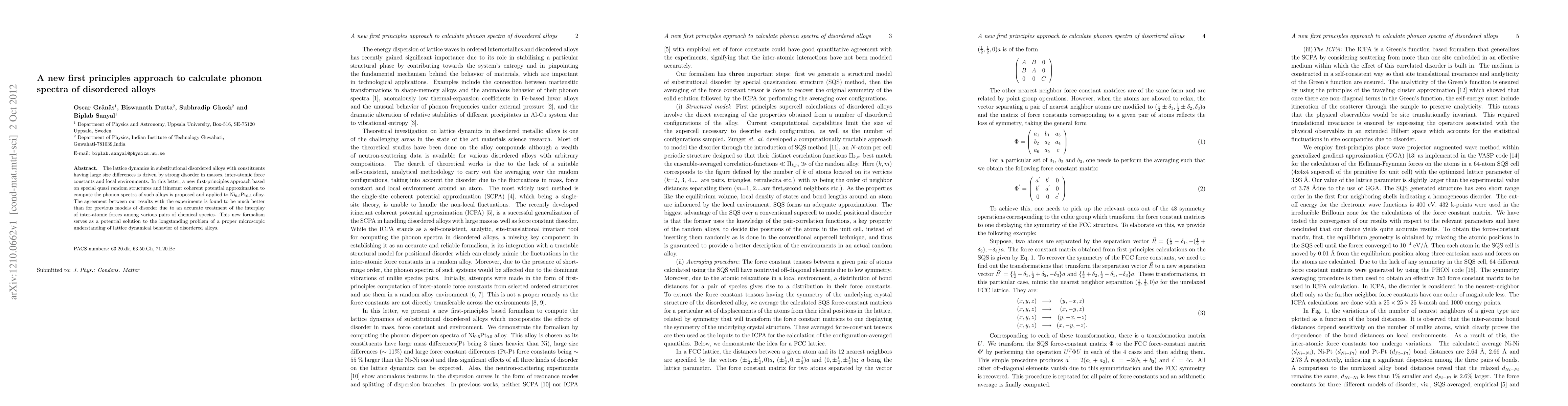 This paper proposes a new first-principles method using special quasi-random structures and the itinerant coherent potential approximation to accurately calculate phonon spectra in disordered alloys, particularly those with large size differences. The approach is demonstrated on Ni$_{0.5}$Pt$_{0.5}$ alloy, showing better agreement with experimental data than previous models due to improved treatment of inter-atomic forces.