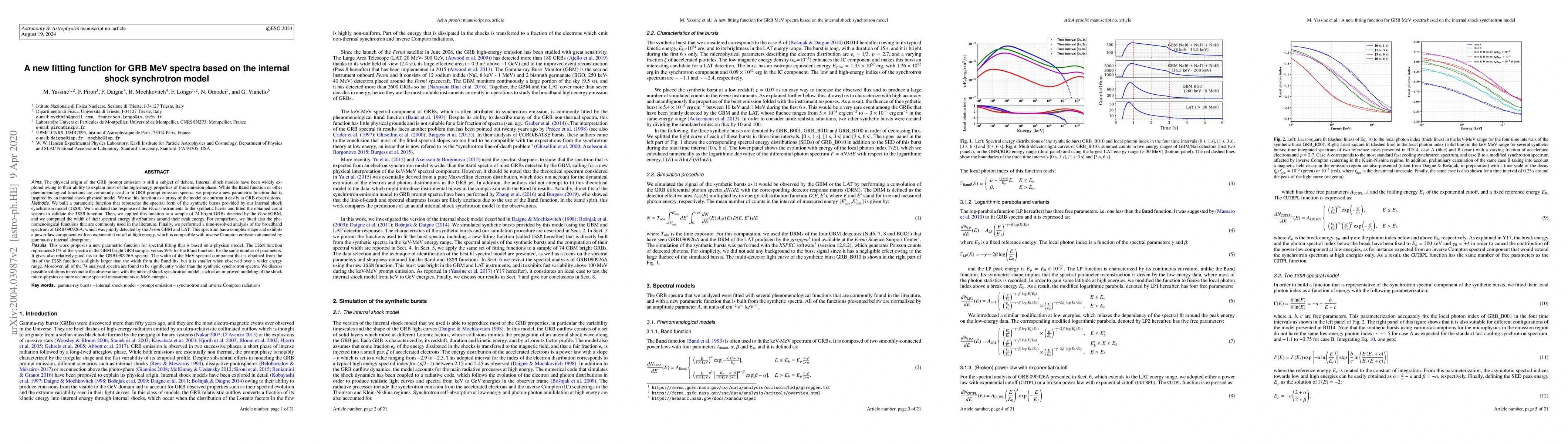 While the Band function or other phenomenological functions are commonly used to fit GRB prompt emission spectra, we propose a new parametric function that is inspired by an internal shock physical model. We use this function as a proxy of the model to confront it easily to GRB observations. We built a parametric function that represents the spectral form of the synthetic bursts provided by our internal shock synchrotron model (ISSM). We simulated the response of the Fermi instruments to the synthetic bursts and fitted the obtained count spectra to validate the ISSM function. Then, we applied this function to a sample of 74 bright GRBs detected by the Fermi/GBM, and we computed the width of their spectral energy distributions around their peak energy. For comparison, we fitted also the phenomenological functions that are commonly used in the literature. Finally, we performed a time-resolved analysis of the broadband spectrum of GRB 090926A, which was jointly detected by the Fermi GBM and LAT. The ISSM function reproduces 81% of the spectra in the GBM bright GRB sample, versus 59% for the Band function, for the same number of parameters. It gives also relatively good fits to the GRB 090926A spectra. The width of the MeV spectral component that is obtained from the fits of the ISSM function is slightly larger than the width from the Band fits, but it is smaller when observed over a wider energy range. Moreover, all of the 74 analysed spectra are found to be significantly wider than the synthetic synchrotron spectra. We discuss possible solutions to reconcile the observations with the internal shock synchrotron model, such as an improved modeling of the shock micro-physics or more accurate spectral measurements at MeV energies.