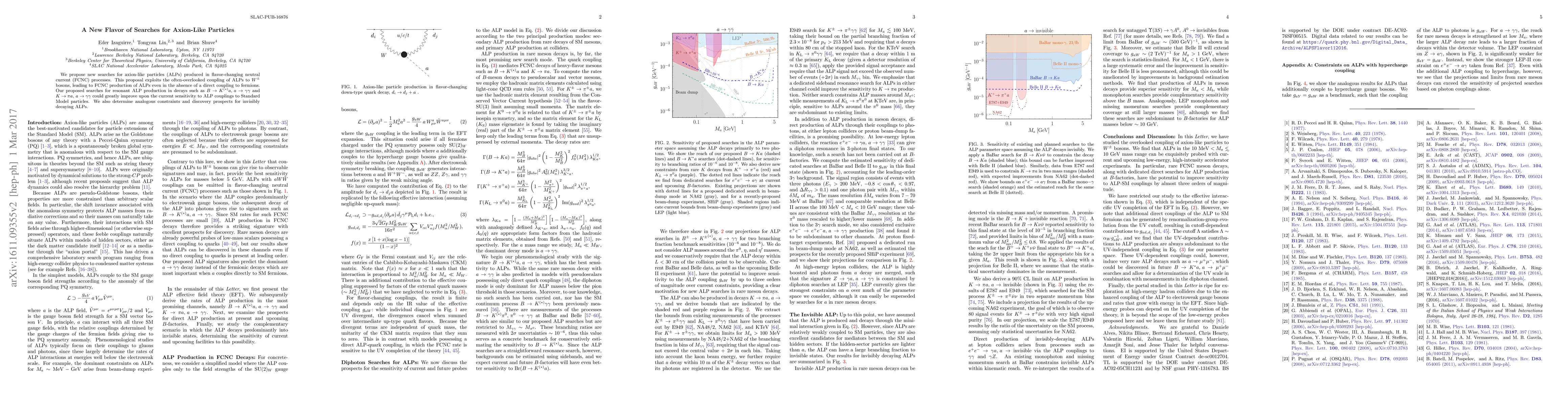 We propose new searches for axion-like particles (ALPs) produced in flavor-changing neutral current (FCNC) processes. This proposal exploits the often-overlooked coupling of ALPs to W bosons, leading to FCNC production of ALPs even in the absence of a direct coupling to fermions. Our proposed searches for resonant ALP production in decays such as $B\rightarrow K^{(*)}a,\,a\rightarrow \gamma\gamma$ and $K\rightarrow \pi a, \,a\rightarrow \gamma\gamma$ could greatly improve upon the current sensitivity to ALP couplings to Standard Model particles. We also determine analogous constraints and discovery prospects for invisibly decaying ALPs.