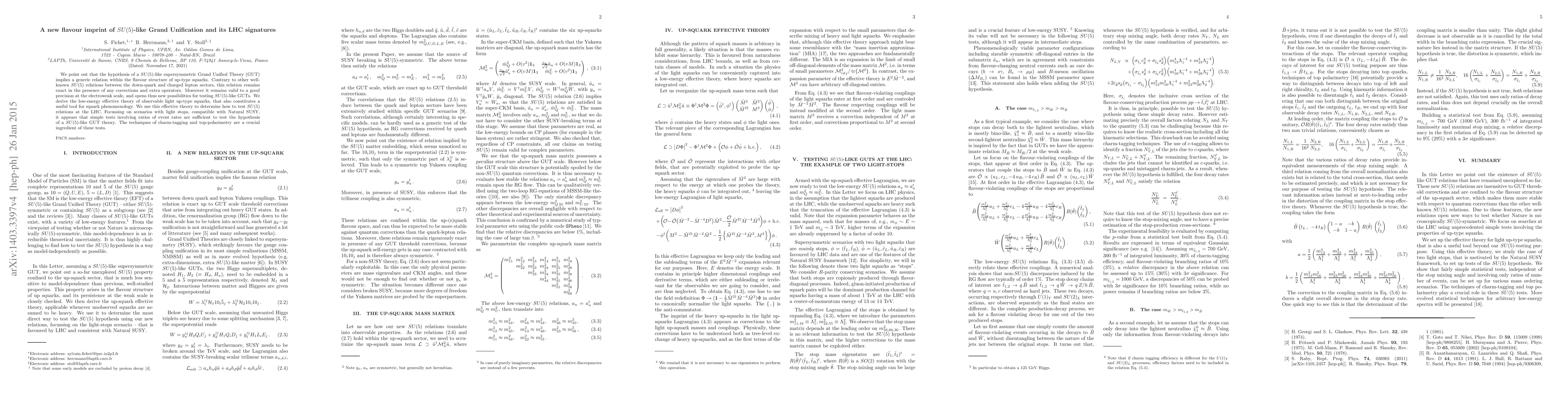 This paper explores a new flavour imprint within SU(5)-like supersymmetric Grand Unified Theories, highlighting a precise relation in up-type squarks that remains valid at the electroweak scale. It proposes LHC tests using charm-tagging and top-polarimetry to verify these relations, especially in scenarios with light stops.