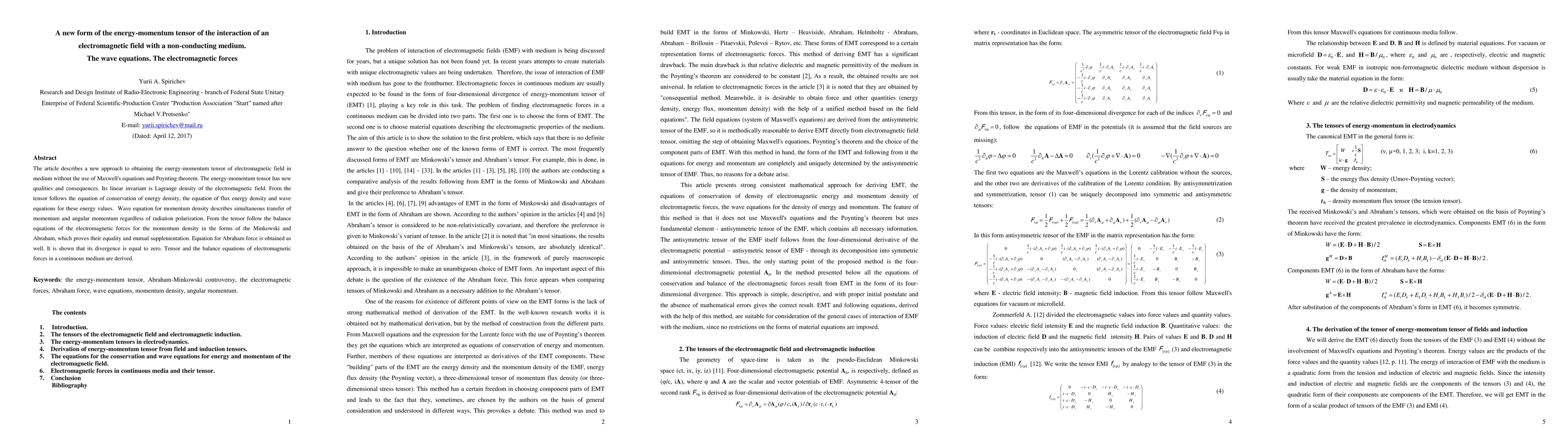 The paper introduces a novel energy-momentum tensor for electromagnetic fields in non-conducting media, bypassing traditional Maxwell's equations and Poynting theorem. It derives wave equations and conservation laws, demonstrating the tensor's role in describing momentum and angular momentum transfer, and proving the equivalence of Minkowski and Abraham force formulations.