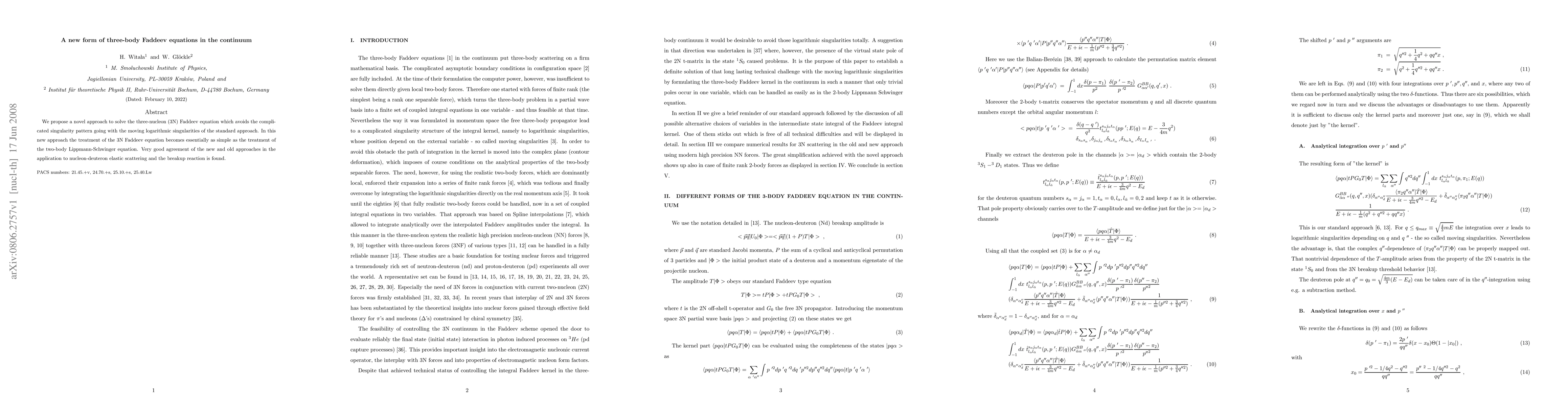 This paper introduces a simplified method for solving the three-nucleon Faddeev equation, avoiding complex singularities, and shows it yields comparable results to traditional methods in nucleon-deuteron scattering and breakup reactions.