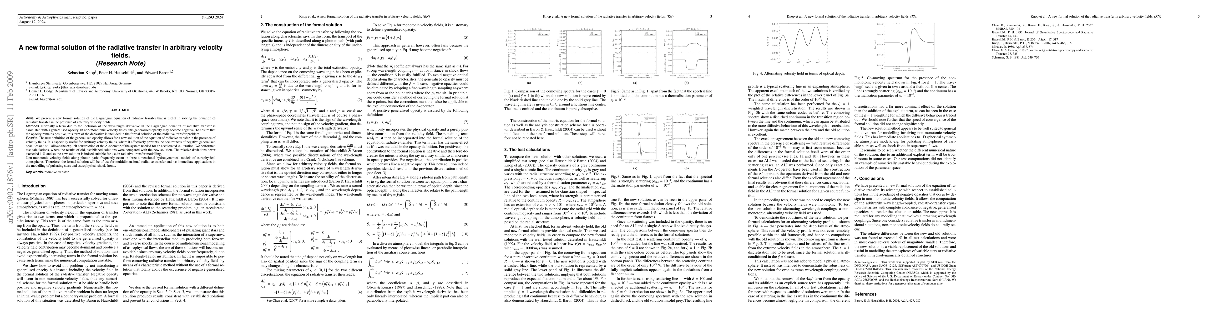 A new formal solution of radiative transfer in arbitrary velocity fields has been developed to prevent negative generalised opacities and enable accurate modeling of astrophysical atmospheres.