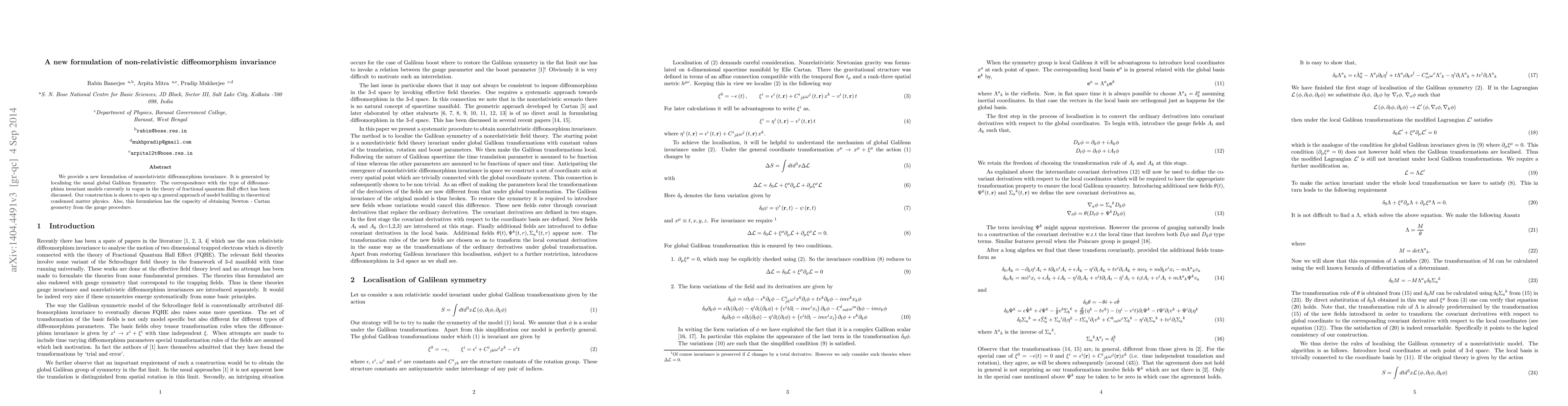 This paper introduces a new formulation of non-relativistic diffeomorphism invariance by localizing the global Galilean symmetry, which parallels current models in the fractional quantum Hall effect theory and offers a general approach for theoretical condensed matter physics model building. The new formulation also facilitates the derivation of Newton-Cartan geometry through gauge procedures.