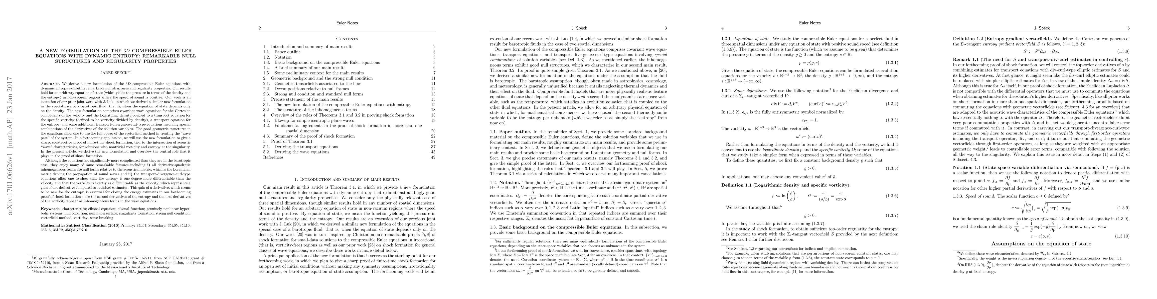 Researchers develop a new formulation of 3D compressible Euler equations with dynamic entropy, revealing remarkable null structures and regularity properties in non-vacuum regions with positive speed of sound.