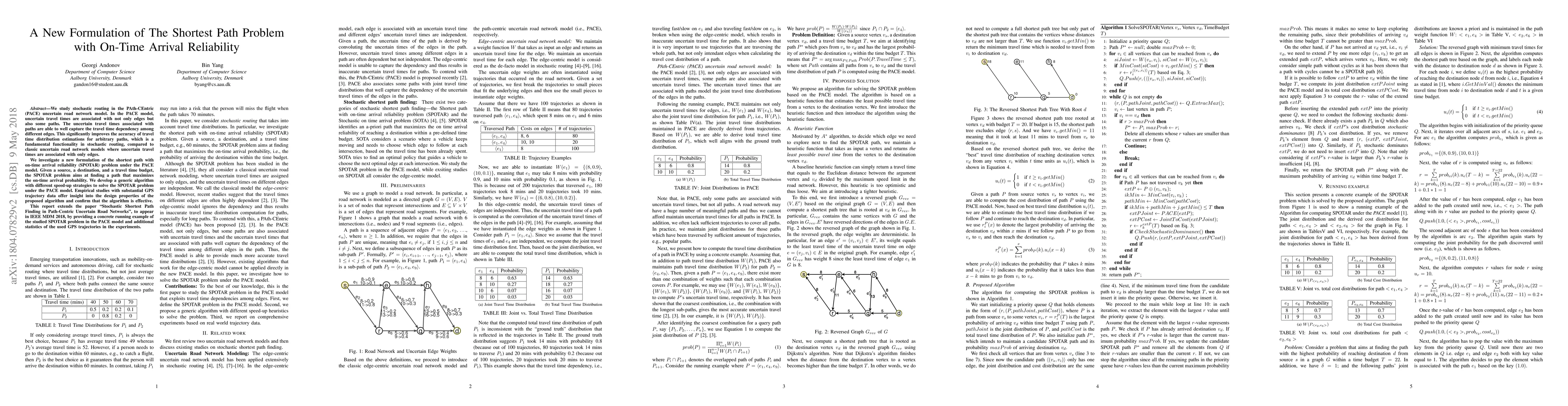 This paper introduces a new formulation of the shortest path problem with on-time arrival reliability (SPOTAR) in the PAth-CEntric (PACE) uncertain road network model, which better captures travel time dependencies among edges. It proposes a generic algorithm to solve the SPOTAR problem and validates its effectiveness using empirical GPS trajectory data.