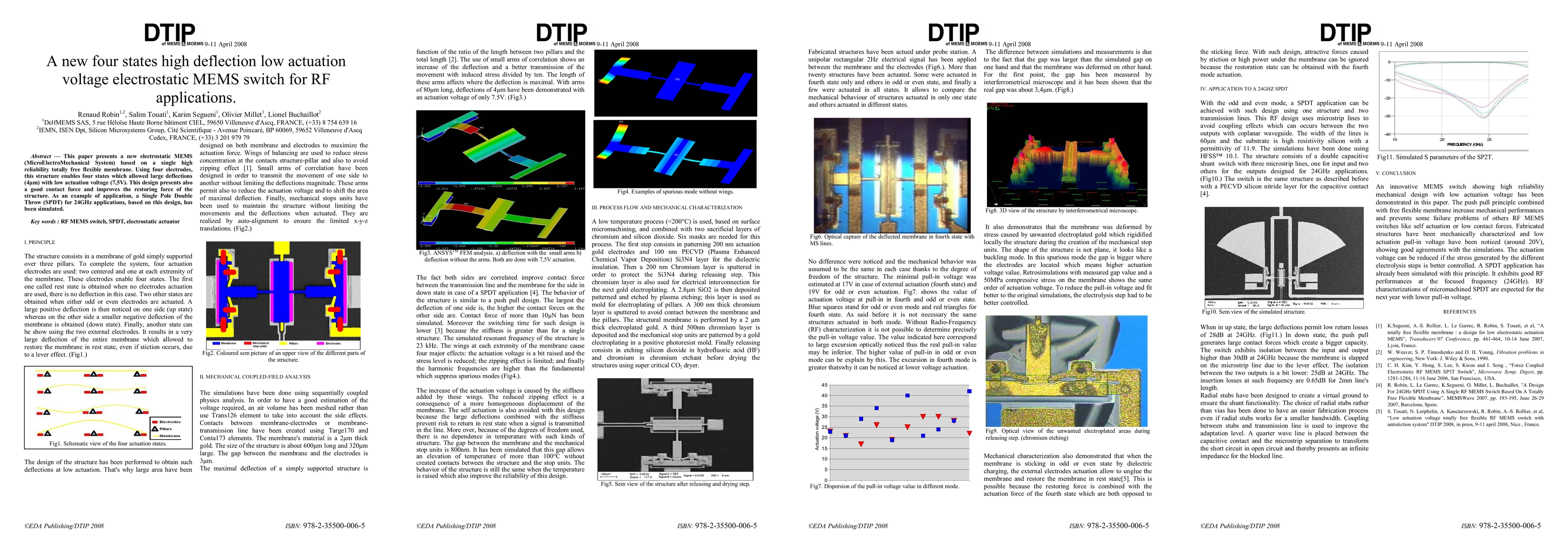 This paper presents a new electrostatic MEMS (MicroElectroMechanical System) based on a single high reliability totally free flexible membrane. Using four electrodes, this structure enables four states which allowed large deflections (4$\mu$m) with low actuation voltage (7,5V). This design presents also a good contact force and improve the restoring force of the structure. As an example of application, a Single Pole Double Throw (SPDT) for 24GHz applications, based on this design, has been simulated.