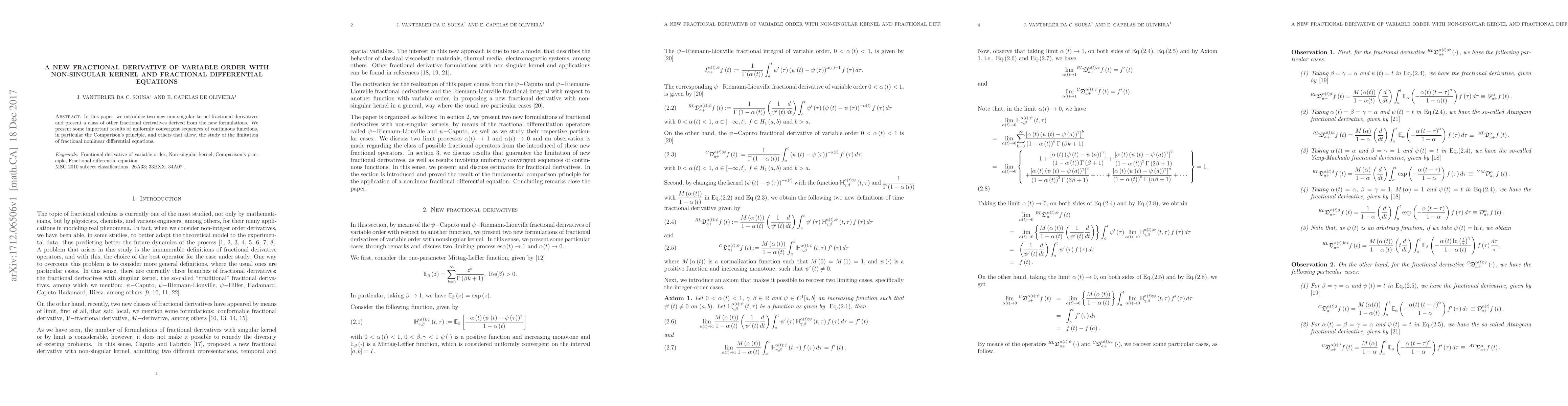 In this paper, we introduce two new non-singular kernel fractional derivatives and present a class of other fractional derivatives derived from the new formulations. We present some important results of uniformly convergent sequences of continuous functions, in particular the Comparison's principle, and others that allow, the study of the limitation of fractional nonlinear differential equations.