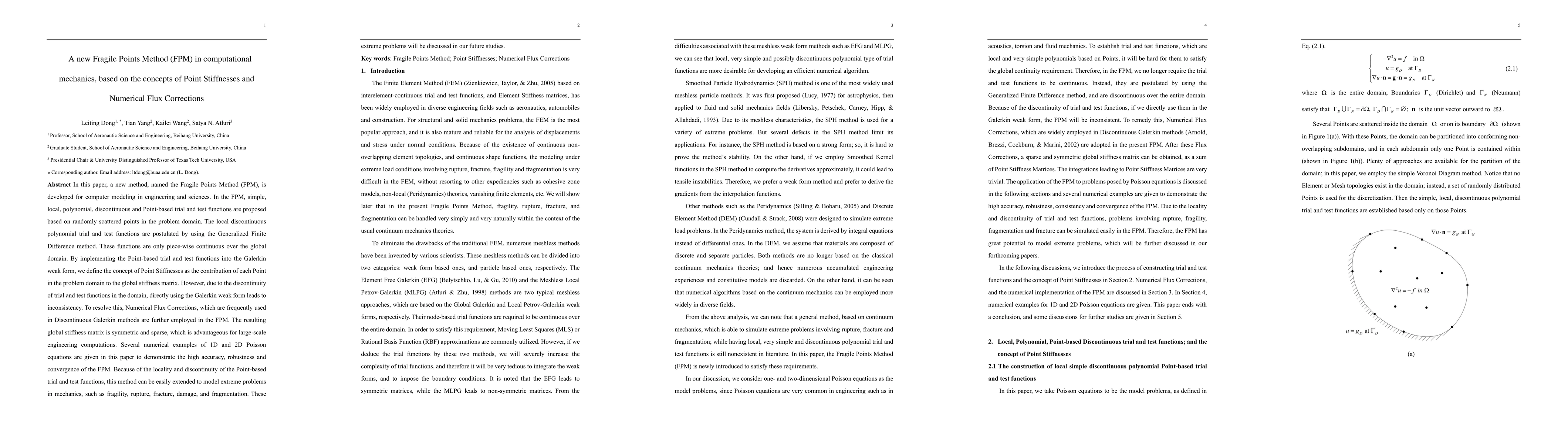 A new Fragile Points Method (FPM) is developed for computer modeling in engineering and sciences, combining Point Stiffnesses and Numerical Flux Corrections to achieve high accuracy and robustness in large-scale computations.