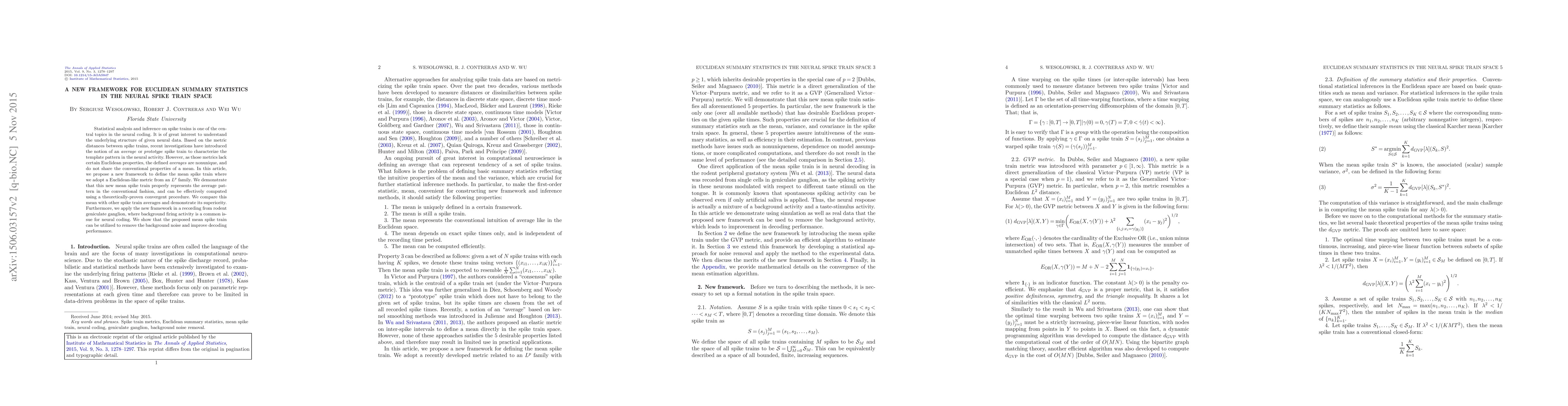 This paper proposes a new framework for defining a mean spike train using an $L^p$ Euclidean-like metric, which resolves issues of nonuniqueness and lack of conventional mean properties. The new mean is shown to improve noise removal and decoding performance in neural data analysis.