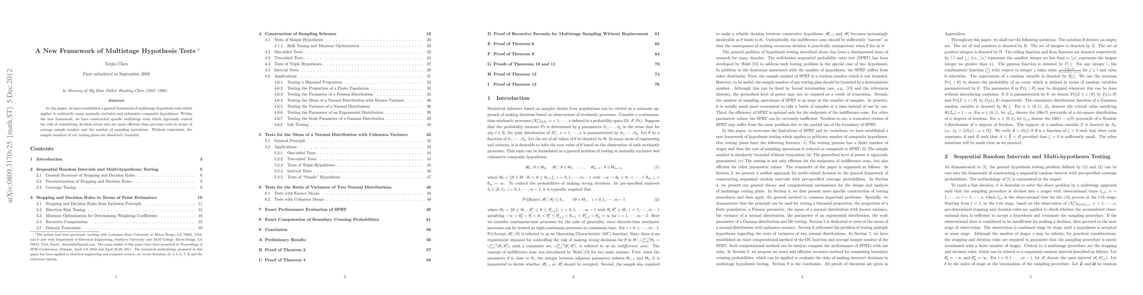 This paper introduces a new framework for multistage hypothesis tests that applies to multiple composite hypotheses, offering tests that control decision error risks and are more efficient than previous methods, with bounded sample numbers without truncation. The framework enhances both average sample number and sampling operation efficiency.