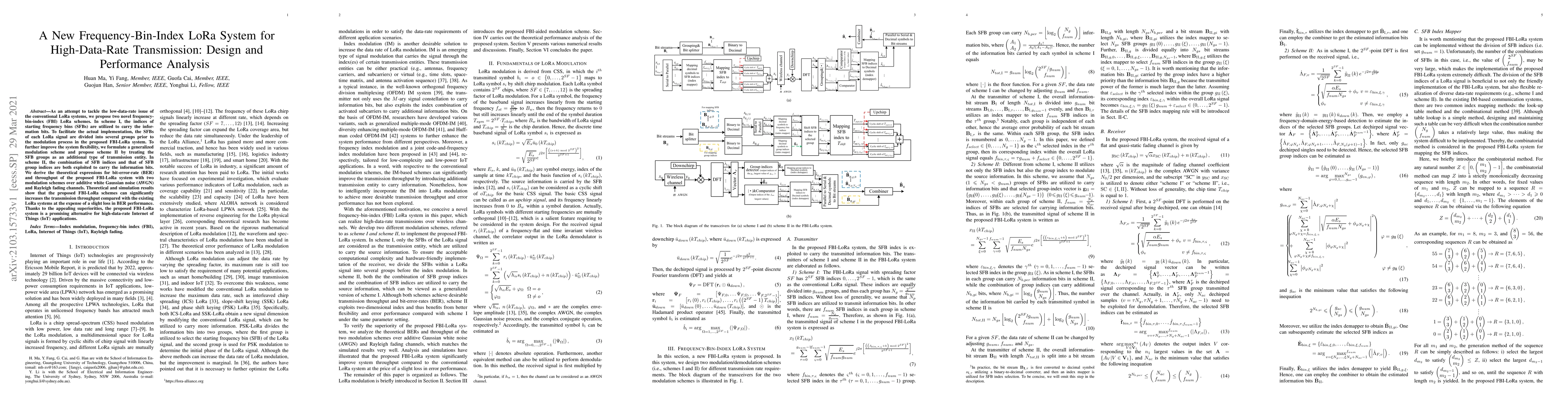 This paper proposes two novel frequency-bin-index (FBI) LoRa schemes to enhance data rates, utilizing starting frequency bin indices for information bits. The schemes improve throughput significantly over conventional LoRa systems, albeit with a slight BER performance trade-off, making them suitable for high-data-rate IoT applications.