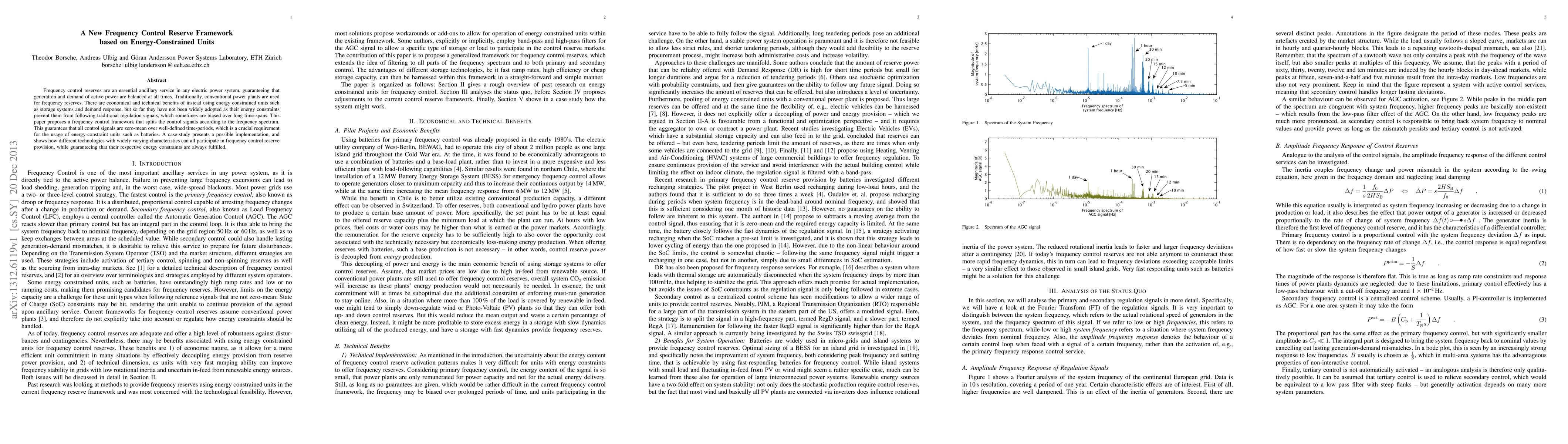 This paper proposes a new frequency control reserve framework that utilizes energy-constrained units like storage systems and demand response, addressing their energy constraints by splitting control signals according to the frequency spectrum to ensure zero-mean signals over defined periods. The framework enables diverse technologies to participate in frequency control while respecting their energy limits, as demonstrated through a case study.
