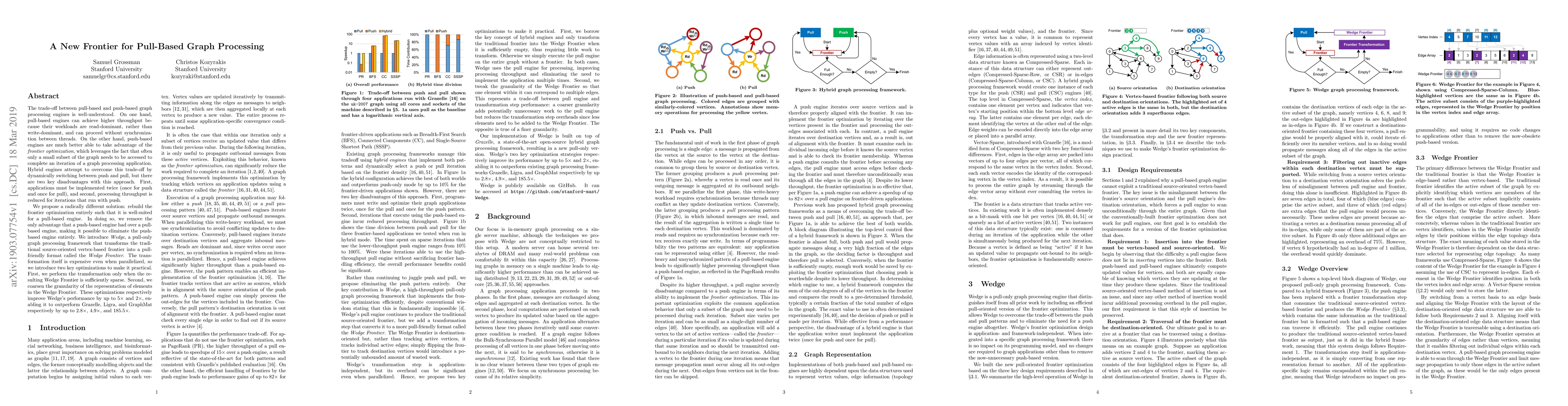 The paper proposes Wedge, a pull-based graph processing framework that redefines the frontier optimization to match pull-based processing, eliminating the need for hybrid or push-based engines. Wedge's performance is enhanced by optimizing the transformation of the frontier and reducing its granularity, achieving up to 185.5x improvement over existing graph processing frameworks.