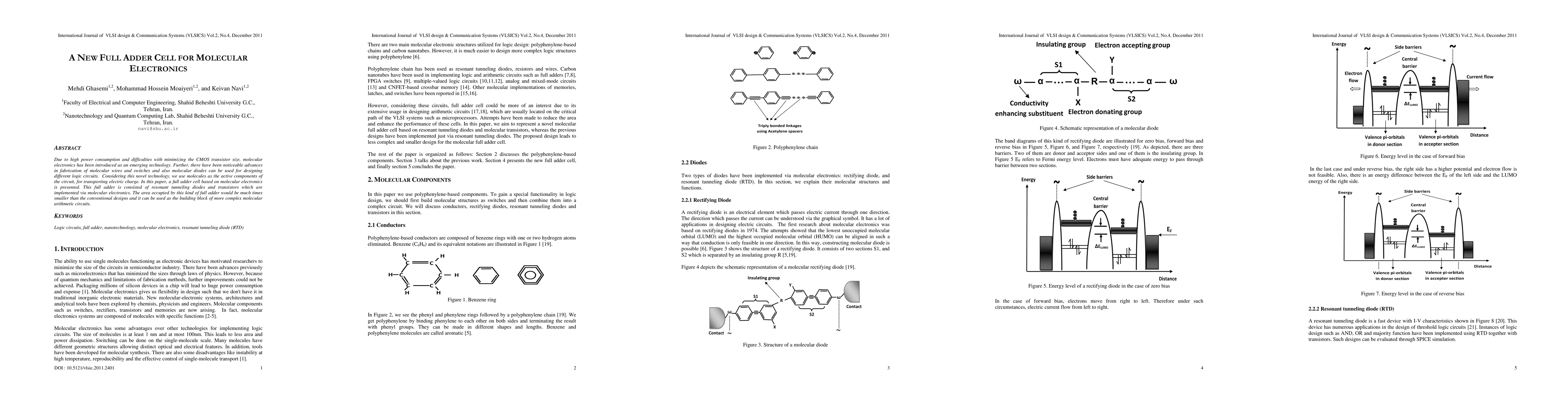 This paper introduces a novel molecular electronics-based full adder cell utilizing resonant tunneling diodes and molecular transistors. This molecular design promises significantly reduced area compared to conventional CMOS designs, serving as a foundation for more complex molecular arithmetic circuits.
