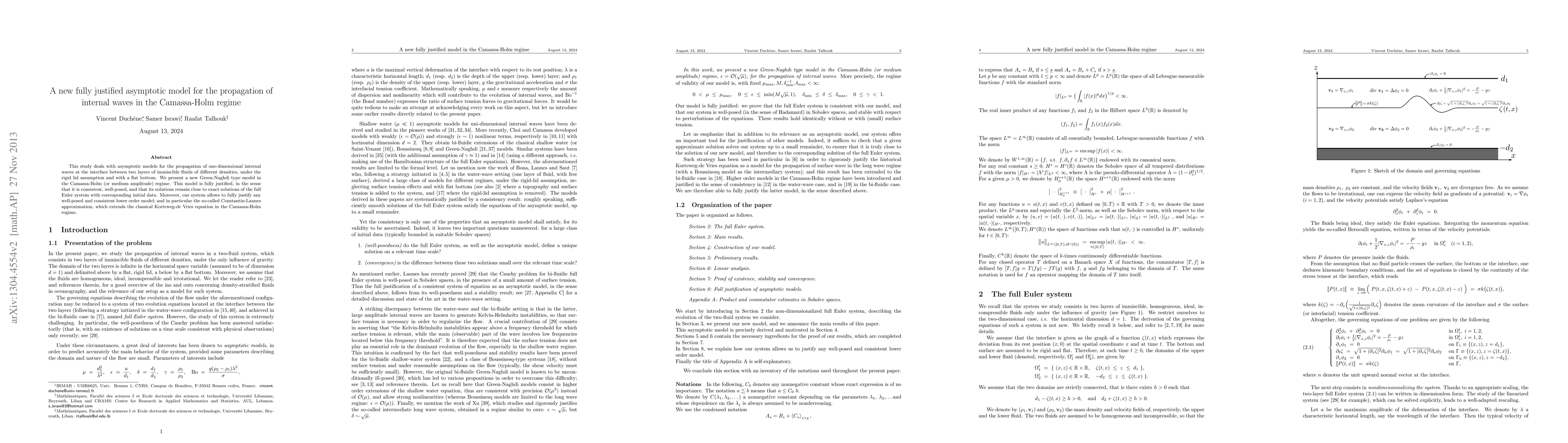 This study deals with asymptotic models for the propagation of one-dimensional internal waves at the interface between two layers of immiscible fluids of different densities, under the rigid lid assumption and with a flat bottom. We present a new Green-Naghdi type model in the Camassa-Holm (or medium amplitude) regime. This model is fully justified, in the sense that it is consistent, well-posed, and that its solutions remain close to exact solutions of the full Euler system with corresponding initial data. Moreover, our system allows to fully justify any well-posed and consistent lower order model; and in particular the so-called Constantin-Lannes approximation, which extends the classical Korteweg-de Vries equation in the Camassa-Holm regime.