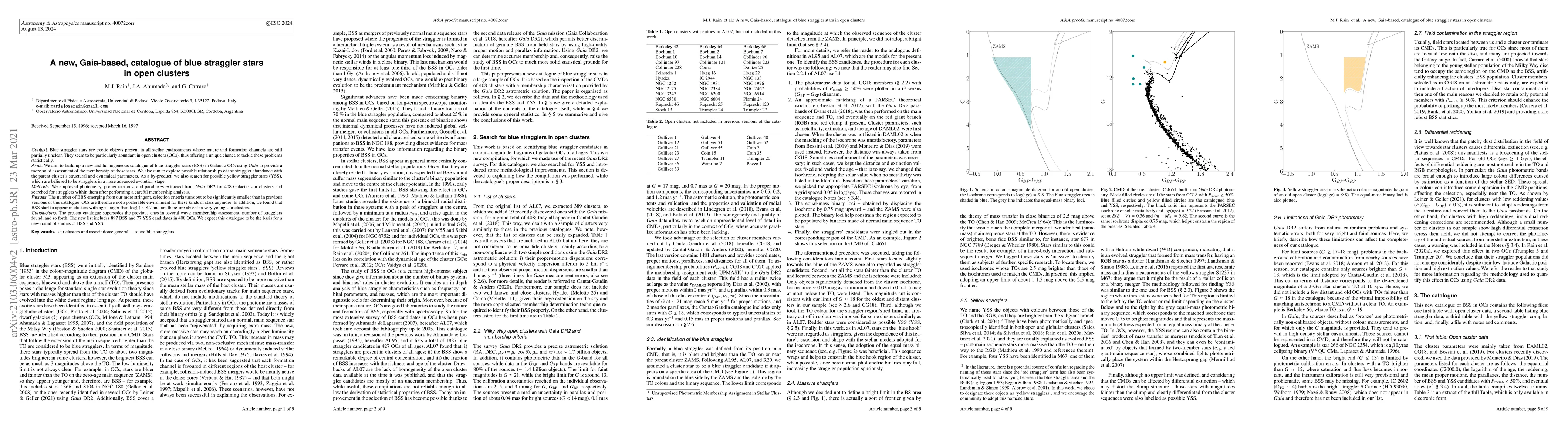 This paper presents a new Gaia-based catalogue of blue straggler stars (BSS) in open clusters, significantly improving membership assessment and reducing the number of identified BSS. The study reveals that BSS are absent in very young clusters and appear in clusters older than log(t) ~ 8.7, providing a more refined understanding of their formation and abundance.