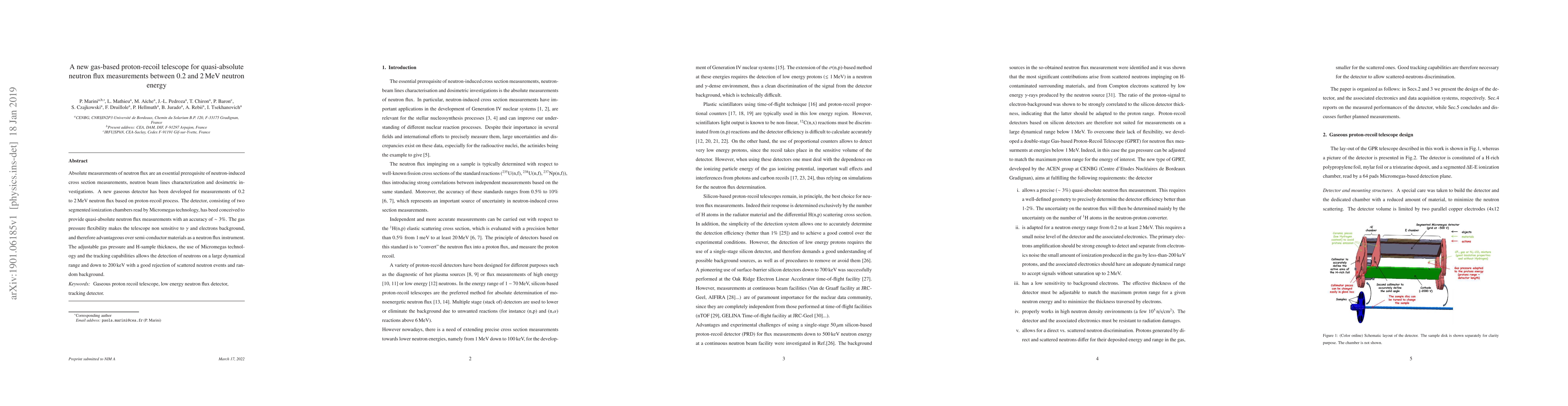 Absolute measurements of neutron flux are an essential prerequisite of neutron-induced cross section measurements, neutron beam lines characterization and dosimetric investigations. A new gaseous detector has been developed for measurements of 0.2 to 2 MeV neutron flux based on proton-recoil process. The detector, consisting of two segmented ionization chambers read by Micromegas technology, has beed conceived to provide quasi-absolute neutron flux measurements with an accuracy of \simeq3%. The gas pressure flexibility makes the telescope non sensitive to {\gamma} and electrons background, and therefore advantageous over semi-conductor materials as a neutron flux instrument. The adjustable gas pressure and H-sample thickness, the use of Micromegas technology and the tracking capabilities allows the detection of neutrons on a large dynamical range and down to 200 keV with a good rejection of scattered neutron events and random background