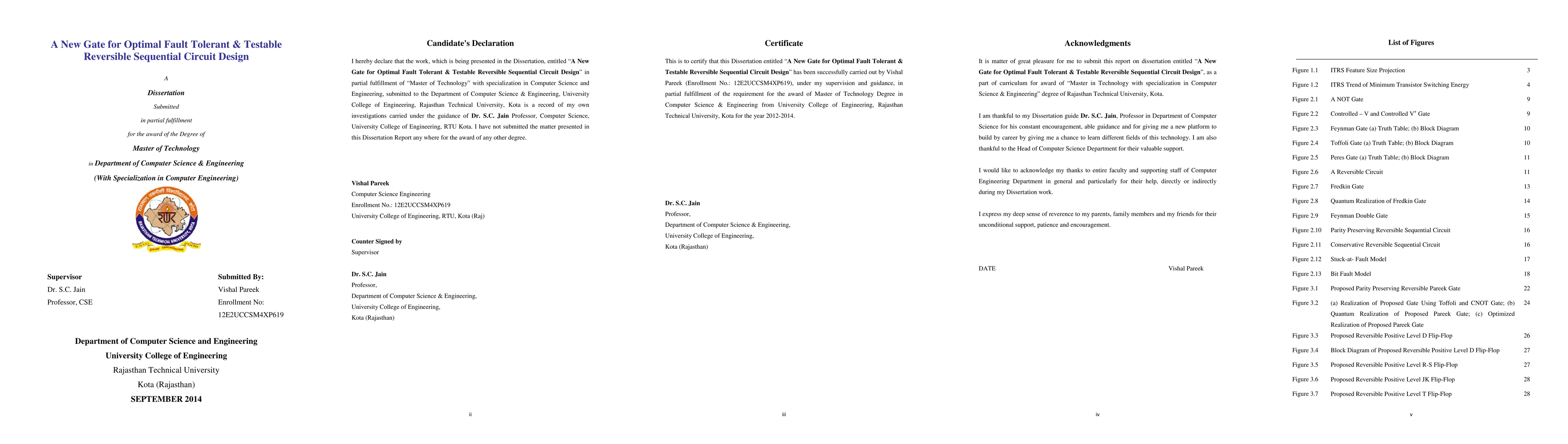 With phenomenal growth of high speed and complex computing applications, the design of low power and high speed logic circuits have created tremendous interest. Conventional computing devices are based on irreversible logic and further reduction in power consumption and/or increase in speed appears non-promising. Reversible computing has emerged as a solution looking to the power and speed requirements of future computing devices. In reversible computing logic gates used are such that input can be generated by reversing the operation from output. A number of reversible combinational circuits have been developed but the growth of sequential circuits was not significant due to feedback and fanout was not allowed. However, allowing feedback in space, a very few sequential logic blocks i.e. flip-flops have been reported in literature. In order to develop sequential circuits, flip-flops are used in conventional circuits. Also good circuit design methods, optimized and fault tolerant designs are also needed to build large, complex and reliable circuits in conventional computing. Reversible flip-flops are the basic memory elements that will be the building block of memory for reversible computing and quantum computing devices. In this dissertation we plan to address above issues. First we have proposed a Pareek gate suitable for low-cost flip-flops design and then design methodology to develop flip-flops are illustrated. Further almost all flip-flops and some example circuit have been developed and finally these circuits have been converted into fault tolerant circuits by preserving their parity and designs of offline as well as online testable circuits have been proposed. In this dissertation work, we have also compared quantum cost as well as other parameters with existing circuits and shown a significant improvement in almost all parameters.