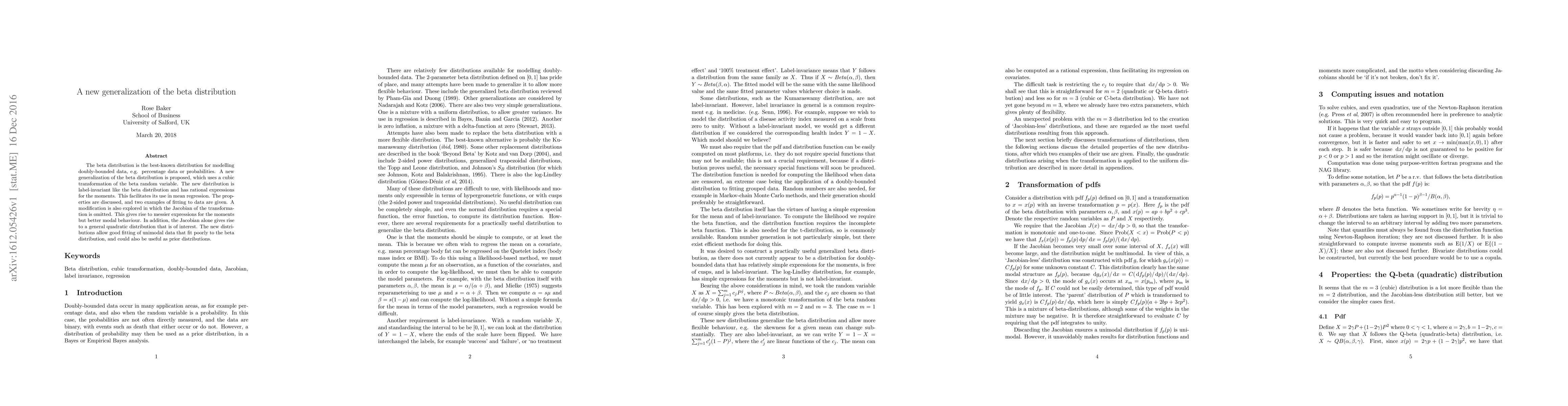 The beta distribution is the best-known distribution for modelling doubly-bounded data, \eg percentage data or probabilities. A new generalization of the beta distribution is proposed, which uses a cubic transformation of the beta random variable. The new distribution is label-invariant like the beta distribution and has rational expressions for the moments. This facilitates its use in mean regression. The properties are discussed, and two examples of fitting to data are given. A modification is also explored in which the Jacobian of the transformation is omitted. This gives rise to messier expressions for the moments but better modal behaviour. In addition, the Jacobian alone gives rise to a general quadratic distribution that is of interest. The new distributions allow good fitting of unimodal data that fit poorly to the beta distribution, and could also be useful as prior distributions.