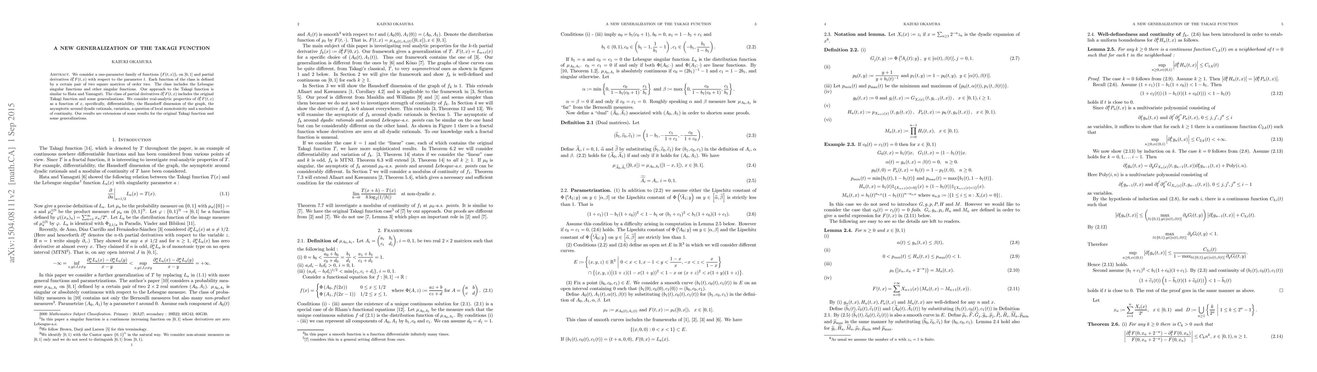 This paper generalizes the Takagi function with a one-parameter family of functions, exploring their real-analytic properties and extending previous results on differentiability, Hausdorff dimension, and local monotonicity.