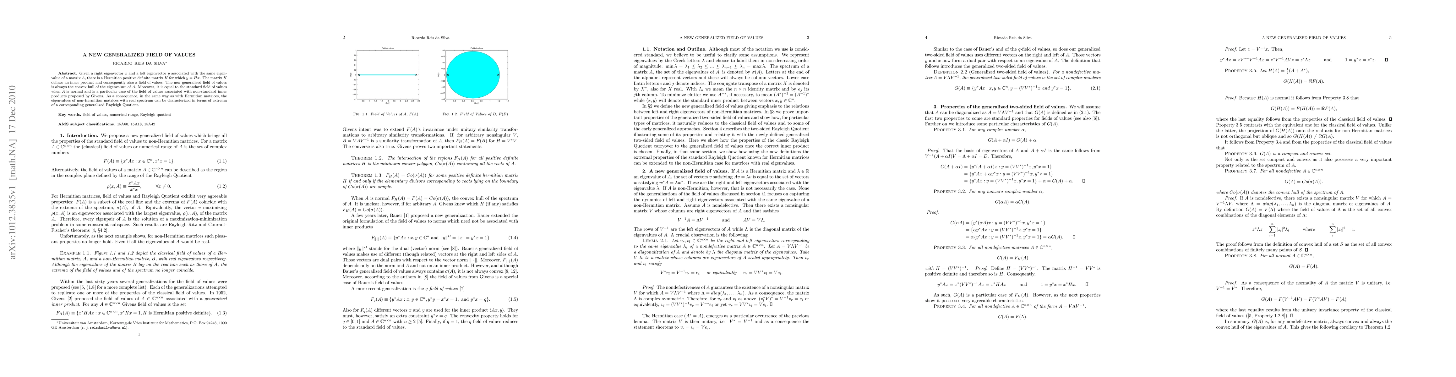 Given a right eigenvector $x$ and a left eigenvector $y$ associated with the same eigenvalue of a matrix $A$, there is a Hermitian positive definite matrix $H$ for which $y=Hx$. The matrix $H$ defines an inner product and consequently also a field of values. The new generalized field of values is always the convex hull of the eigenvalues of $A$. Moreover, it is equal to the standard field of values when $A$ is normal and is a particular case of the field of values associated with non-standard inner products proposed by Givens. As a consequence, in the same way as with Hermitian matrices, the eigenvalues of non-Hermitian matrices with real spectrum can be characterized in terms of extrema of a corresponding generalized Rayleigh Quotient.