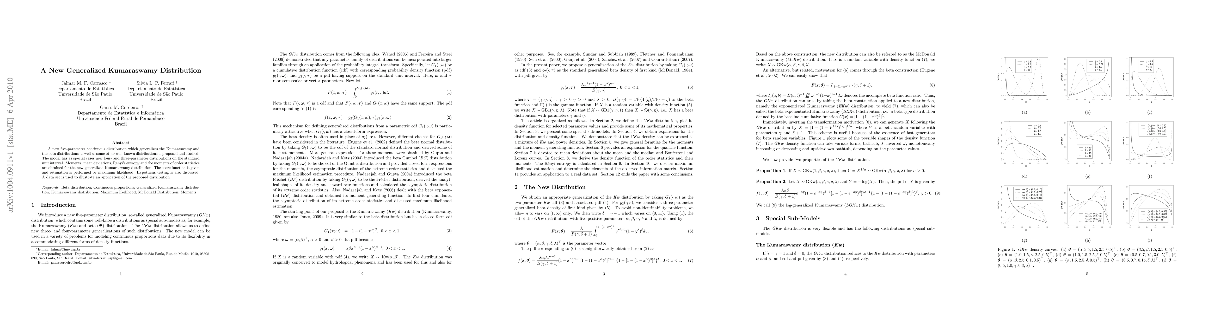 This paper introduces a new five-parameter generalized Kumaraswamy distribution, which extends the Kumaraswamy and beta distributions. It provides moments, mean deviations, Rényi entropy, and order statistics for the new model, and discusses maximum likelihood estimation and hypothesis testing, with an application demonstrated using a data set.