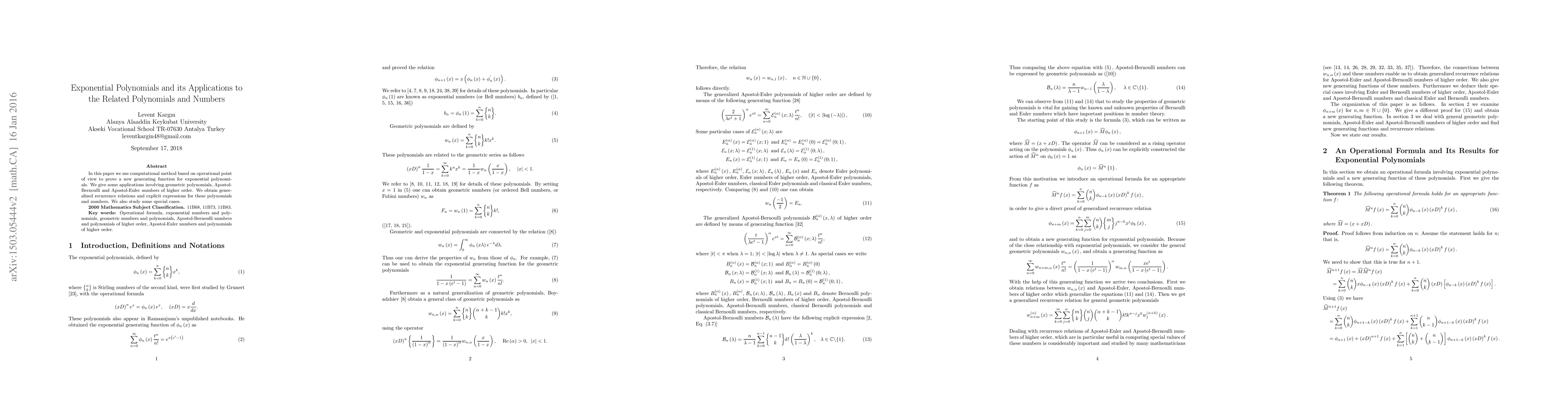 Summary: This paper introduces a new generating function for exponential polynomials using computational methods. It applies this function to study geometric polynomials and connections to Bernoulli and Euler numbers.