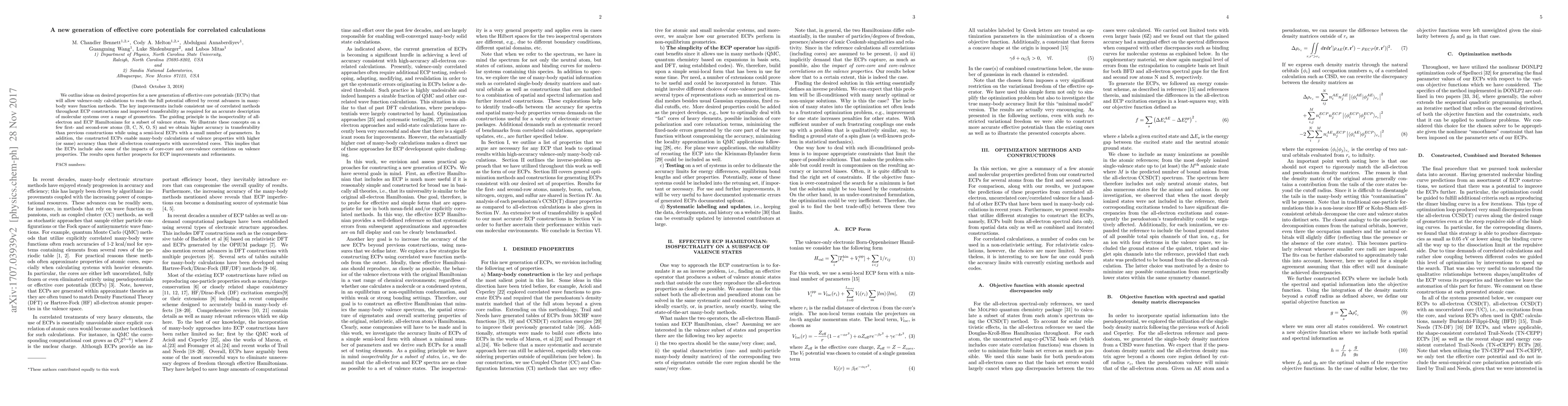 This paper proposes a new generation of effective core potentials (ECPs) that aim to enhance the accuracy and transferability of valence-only calculations, leveraging recent advances in many-body wave function methods. The new ECPs achieve higher accuracy through consistent use of correlated methods and improved isospectrality, enabling more precise valence property calculations.