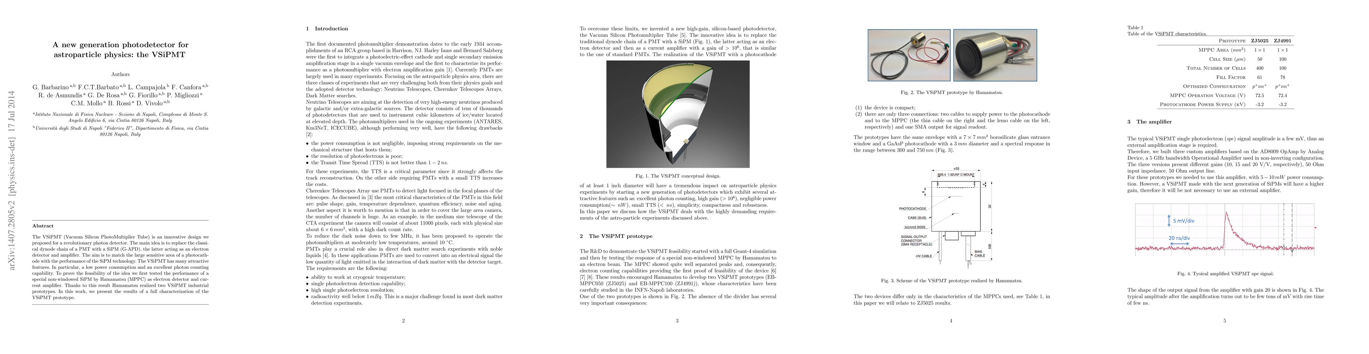 Researchers developed a new photodetector called VSiPMT that combines the benefits of PMTs and SiPM technology for astroparticle physics, offering low power consumption and high photon counting capability.