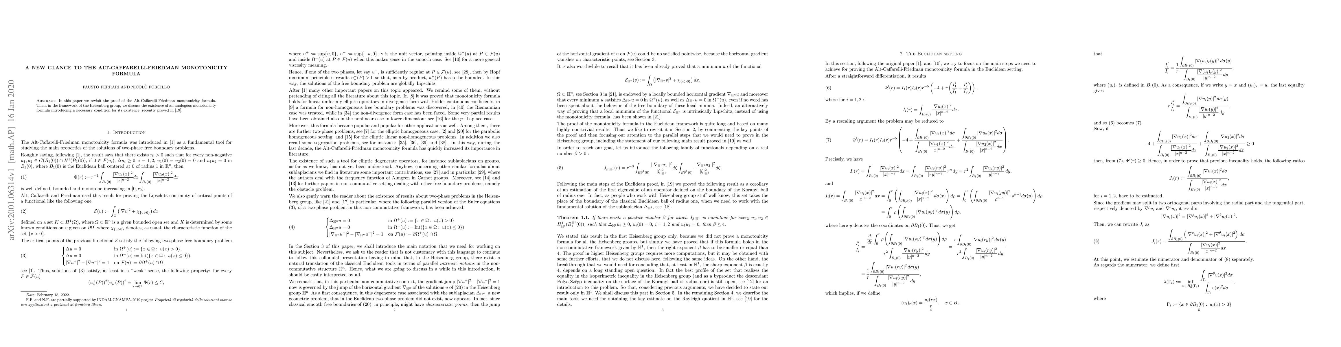 In this paper we revisit the proof of the Alt-Caffarelli-Friedman monotonicity formula. Then, in the framework of the Heisenberg group, we discuss the existence of an analogous monotonicity formula introducing a necessary condition for its existence, recently proved in \cite{FeFo}.