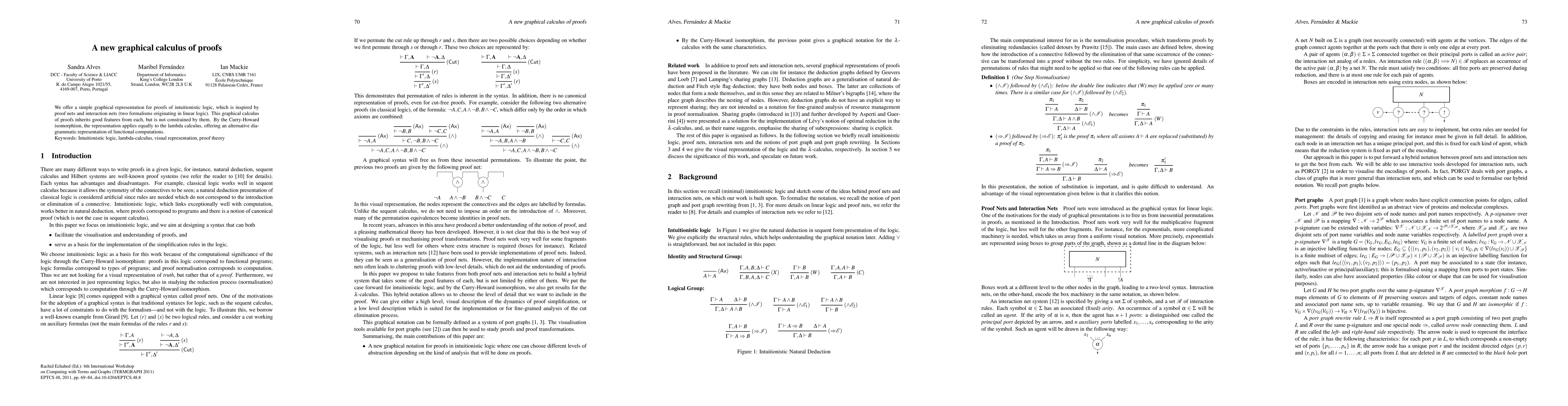 We offer a simple graphical representation for proofs of intuitionistic logic, which is inspired by proof nets and interaction nets (two formalisms originating in linear logic). This graphical calculus of proofs inherits good features from each, but is not constrained by them. By the Curry-Howard isomorphism, the representation applies equally to the lambda calculus, offering an alternative diagrammatic representation of functional computations.