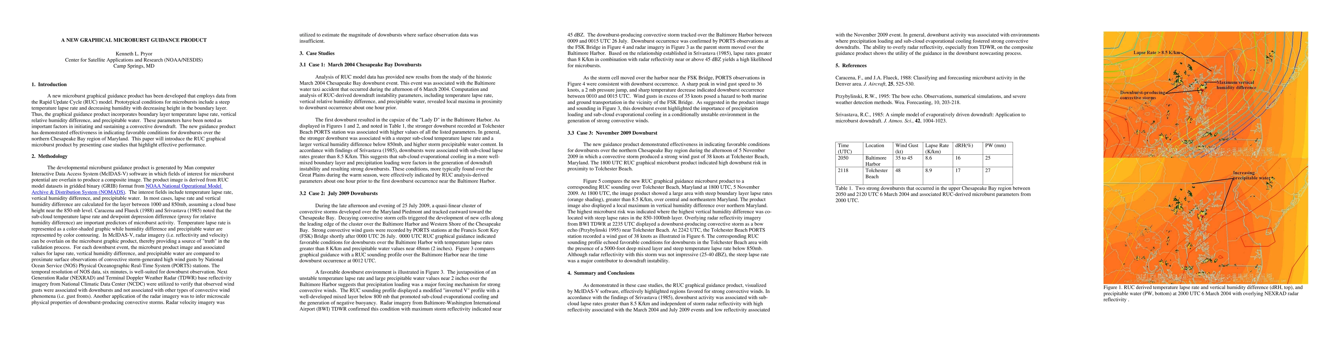 A new microburst graphical guidance product has been developed that employs data from the Rapid Update Cycle (RUC) model. Prototypical conditions for microbursts include a steep temperature lapse rate and decreasing humidity with decreasing height in the boundary layer. Thus, the graphical guidance product incorporates boundary layer temperature lapse rate and vertical relative humidity difference, important factors in initiating and sustaining a convective downdraft. The new guidance product demonstrated effectiveness in indicating favorable conditions for downbursts during the 2009 convective season.