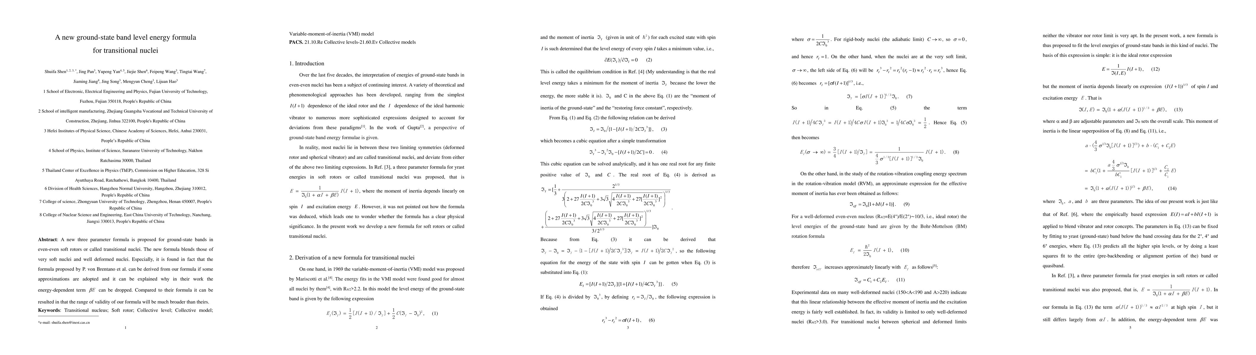 Researchers propose a new formula to calculate ground-state band levels in transitional nuclei, offering broader applicability than existing formulas and bridging the gap between soft and deformed nuclei.