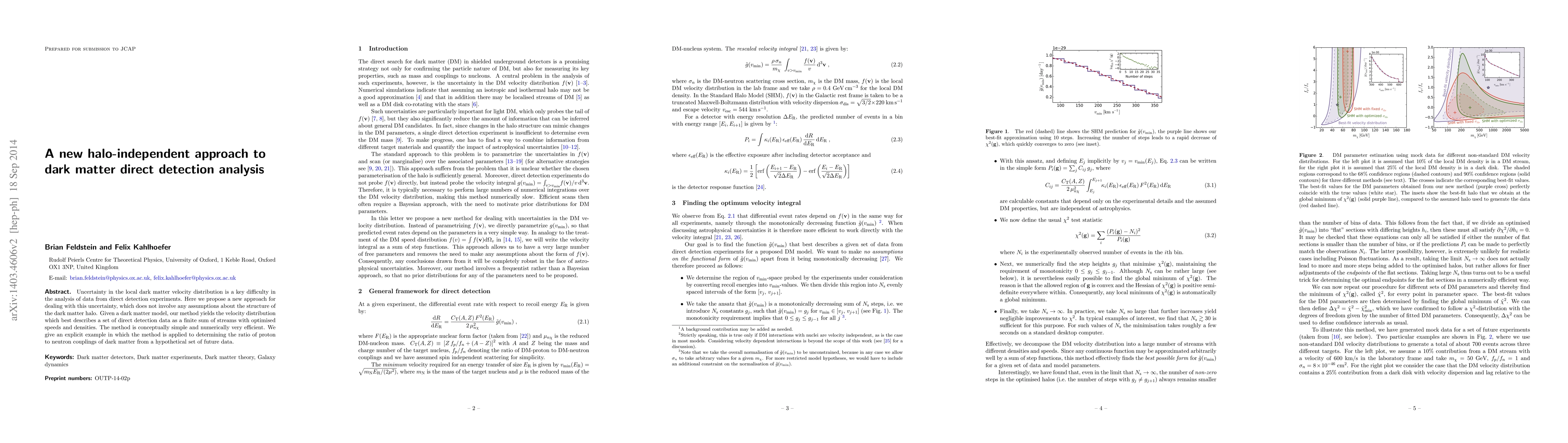 Uncertainty in the local dark matter velocity distribution is a key difficulty in the analysis of data from direct detection experiments. Here we propose a new approach for dealing with this uncertainty, which does not involve any assumptions about the structure of the dark matter halo. Given a dark matter model, our method yields the velocity distribution which best describes a set of direct detection data as a finite sum of streams with optimised speeds and densities. The method is conceptually simple and numerically very efficient. We give an explicit example in which the method is applied to determining the ratio of proton to neutron couplings of dark matter from a hypothetical set of future data.