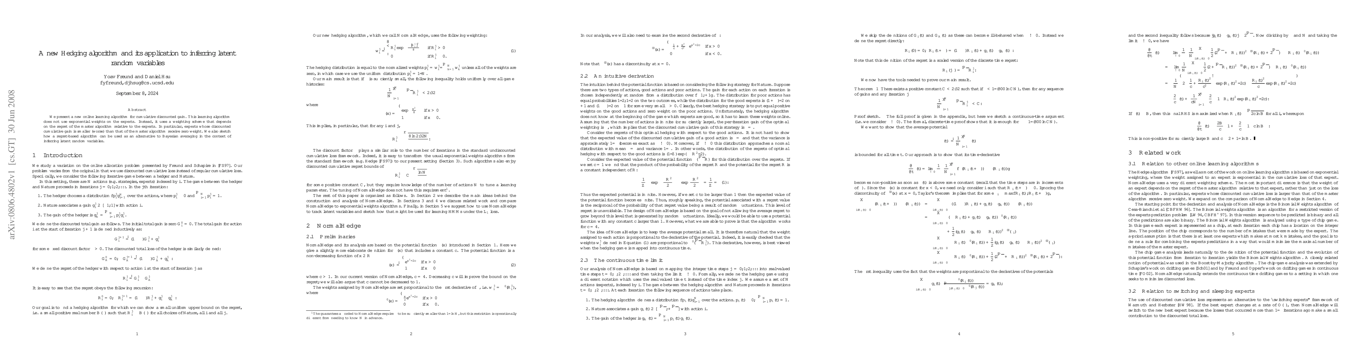 We present a new online learning algorithm for cumulative discounted gain. This learning algorithm does not use exponential weights on the experts. Instead, it uses a weighting scheme that depends on the regret of the master algorithm relative to the experts. In particular, experts whose discounted cumulative gain is smaller (worse) than that of the master algorithm receive zero weight. We also sketch how a regret-based algorithm can be used as an alternative to Bayesian averaging in the context of inferring latent random variables.