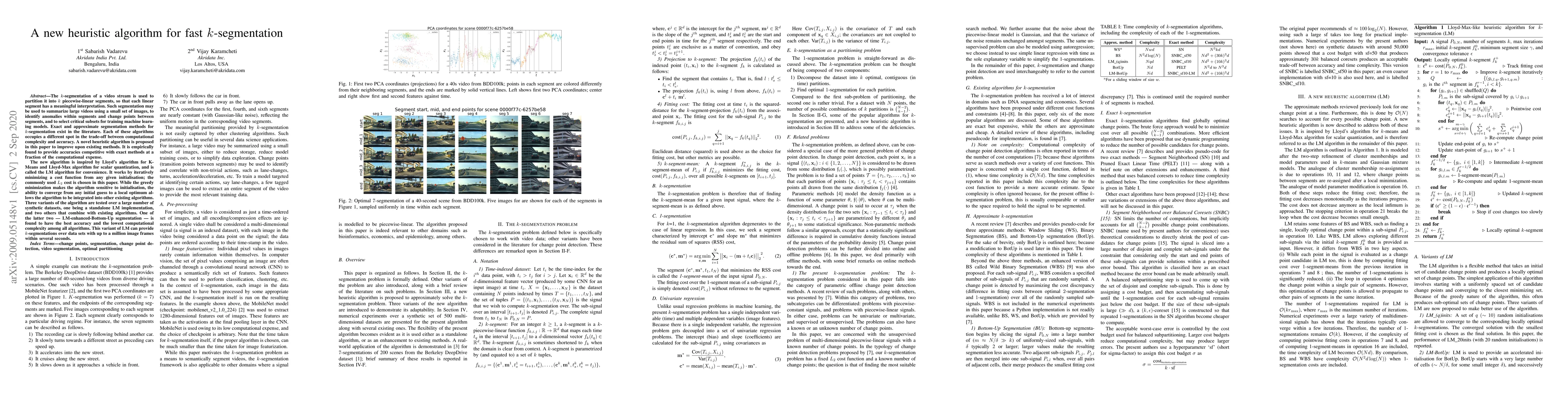A new heuristic algorithm for k-segmentation, called LM, provides competitive accuracy with exact methods at a fraction of the computational expense.