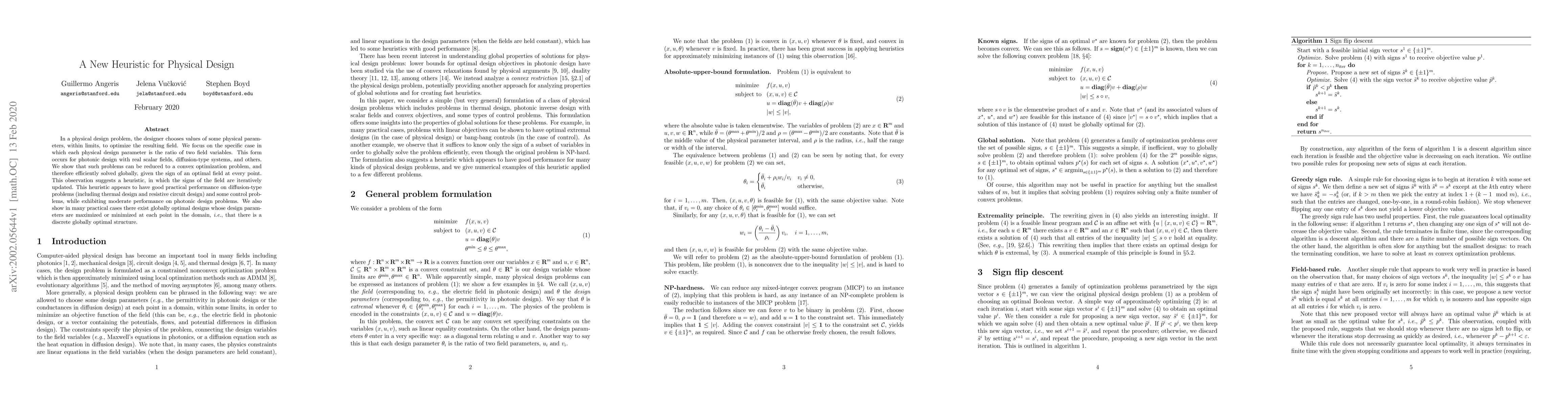 Researchers developed a new heuristic for physical design problems that can efficiently solve diffusion-type systems and some control problems, while achieving moderate performance on photonic design problems.