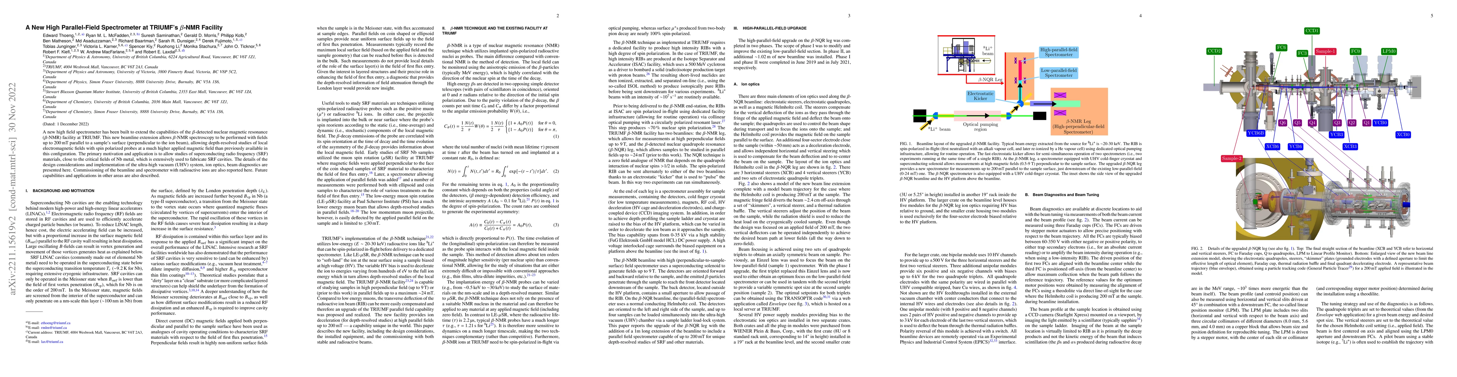 A new high field spectrometer has been built to extend the capabilities of the $\beta$-detected nuclear magnetic resonance ($\beta$-NMR) facility at TRIUMF. This new beamline extension allows $\beta$-NMR spectroscopy to be performed with fields up to 200 mT parallel to a sample's surface (perpendicular to the ion beam), allowing depth-resolved studies of local electromagnetic fields with spin polarized probes at a much higher applied magnetic field than previously available in this configuration. The primary motivation and application is to allow studies of superconducting radio frequency (SRF) materials, close to the critical fields of Nb metal, which is extensively used to fabricate SRF cavities. The details of the design considerations and implementation of the ultra-high vacuum (UHV) system, ion optics, beam diagnostics are presented here. Commissioning of the beamline and spectrometer with radioactive ions are also reported here. Future capabilities and applications in other areas are also described.