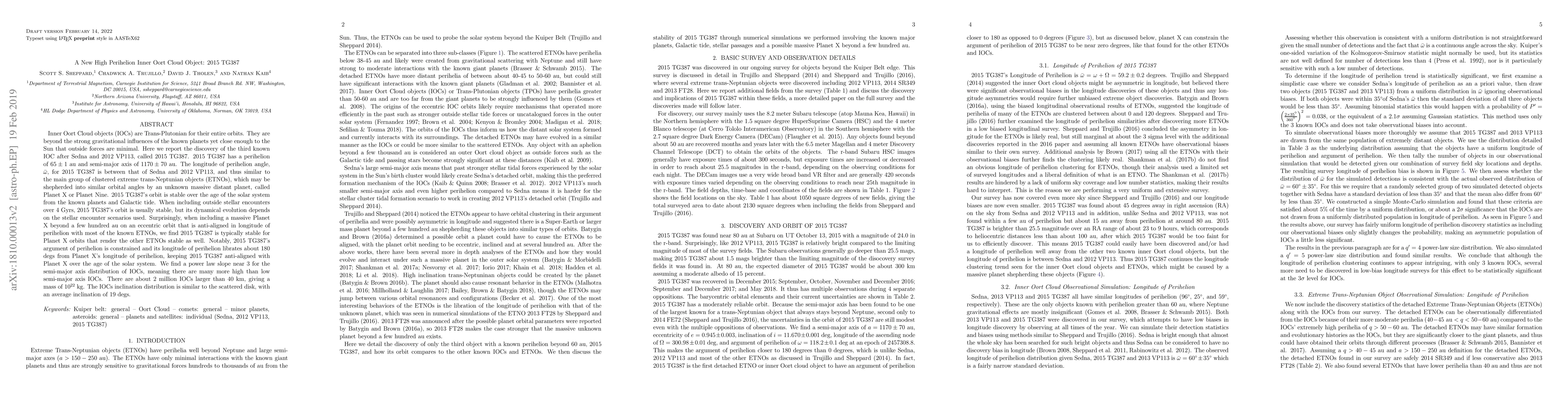 Inner Oort Cloud objects (IOCs) are Trans-Plutonian for their entire orbits. They are beyond the strong gravitational influences of the known planets yet close enough to the Sun that outside forces are minimal. Here we report the discovery of the third known IOC after Sedna and 2012 VP113, called 2015 TG387. 2015 TG387 has a perihelion of $65 \pm 1$ au and semi-major axis of $1170 \pm 70$ au. The longitude of perihelion angle, $\bar{\omega}$, for 2015 TG387 is between that of Sedna and 2012 VP113, and thus similar to the main group of clustered extreme trans-Neptunian objects (ETNOs), which may be shepherded into similar orbital angles by an unknown massive distant planet, called Planet X or Planet Nine. 2015 TG387's orbit is stable over the age of the solar system from the known planets and Galactic tide. When including outside stellar encounters over 4 Gyrs, 2015 TG387's orbit is usually stable, but its dynamical evolution depends on the stellar encounter scenarios used. Surprisingly, when including a massive Planet X beyond a few hundred au on an eccentric orbit that is anti-aligned in longitude of perihelion with most of the known ETNOs, we find 2015 TG387 is typically stable for Planet X orbits that render the other ETNOs stable as well. Notably, 2015 TG387's argument of perihelion is constrained and its longitude of perihelion librates about 180 degs from Planet X's longitude of perihelion, keeping 2015 TG387 anti-aligned with Planet X over the age of the solar system. We find a power law slope near 3 for the semi-major axis distribution of IOCs, meaning there are many more high than low semi-major axis IOCs. There are about 2 million IOCs larger than 40 km, giving a mass of $10^{22}$ kg. The IOCs inclination distribution is similar to the scattered disk, with an average inclination of 19 degs.