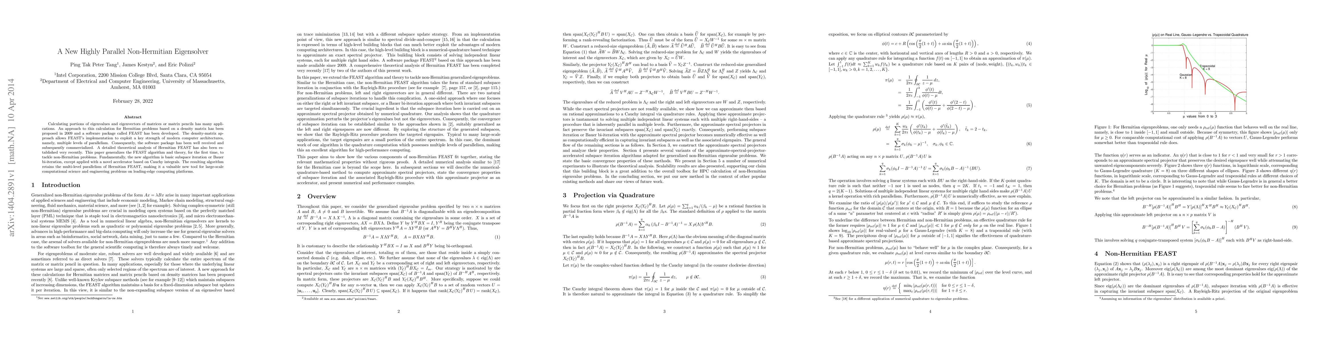 This paper introduces a new highly parallel eigensolver for non-Hermitian problems, extending the successful FEAST algorithm originally designed for Hermitian matrices. The novel approach leverages Cauchy integrals for acceleration, maintaining multi-level parallelism and offering significant potential for large-scale computational applications.