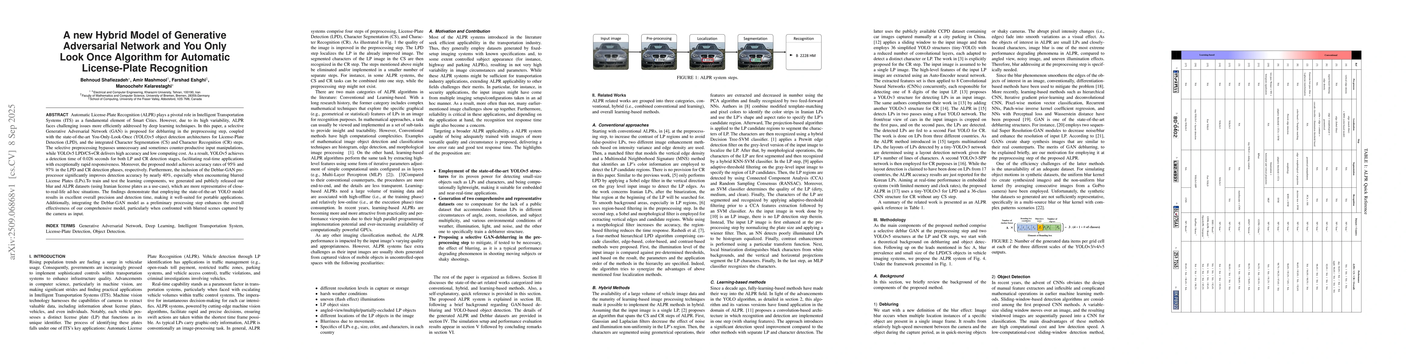 Automatic License-Plate Recognition (ALPR) plays a pivotal role in Intelligent Transportation Systems (ITS) as a fundamental element of Smart Cities. However, due to its high variability, ALPR faces challenging issues more efficiently addressed by deep learning techniques. In this paper, a selective Generative Adversarial Network (GAN) is proposed for deblurring in the preprocessing step, coupled with the state-of-the-art You-Only-Look-Once (YOLO)v5 object detection architectures for License-Plate Detection (LPD), and the integrated Character Segmentation (CS) and Character Recognition (CR) steps. The selective preprocessing bypasses unnecessary and sometimes counter-productive input manipulations, while YOLOv5 LPD/CS+CR delivers high accuracy and low computing cost. As a result, YOLOv5 achieves a detection time of 0.026 seconds for both LP and CR detection stages, facilitating real-time applications with exceptionally rapid responsiveness. Moreover, the proposed model achieves accuracy rates of 95\% and 97\% in the LPD and CR detection phases, respectively. Furthermore, the inclusion of the Deblur-GAN pre-processor significantly improves detection accuracy by nearly 40\%, especially when encountering blurred License Plates (LPs).To train and test the learning components, we generated and publicly released our blur and ALPR datasets (using Iranian license plates as a use-case), which are more representative of close-to-real-life ad-hoc situations. The findings demonstrate that employing the state-of-the-art YOLO model results in excellent overall precision and detection time, making it well-suited for portable applications. Additionally, integrating the Deblur-GAN model as a preliminary processing step enhances the overall effectiveness of our comprehensive model, particularly when confronted with blurred scenes captured by the camera as input.