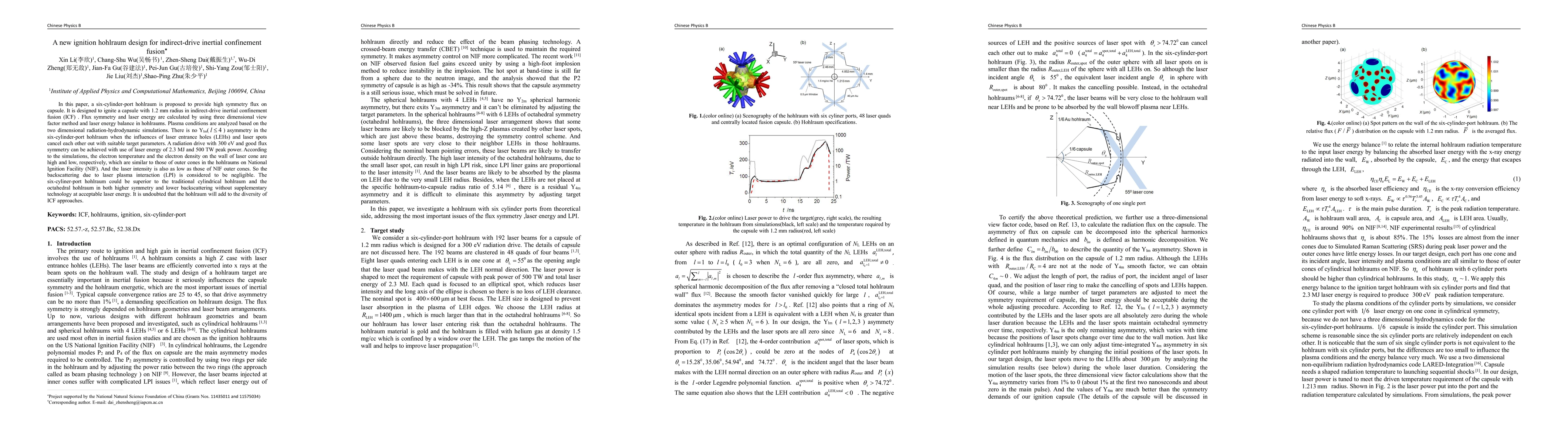 This paper proposes a six-cylinder-port hohlraum design to achieve high symmetry flux and ignition in 1.2 mm radius capsules for indirect-drive inertial confinement fusion. The design achieves optimal symmetry and low backscattering with 2.3 MJ laser energy and 500 TW peak power, outperforming traditional hohlraum designs.