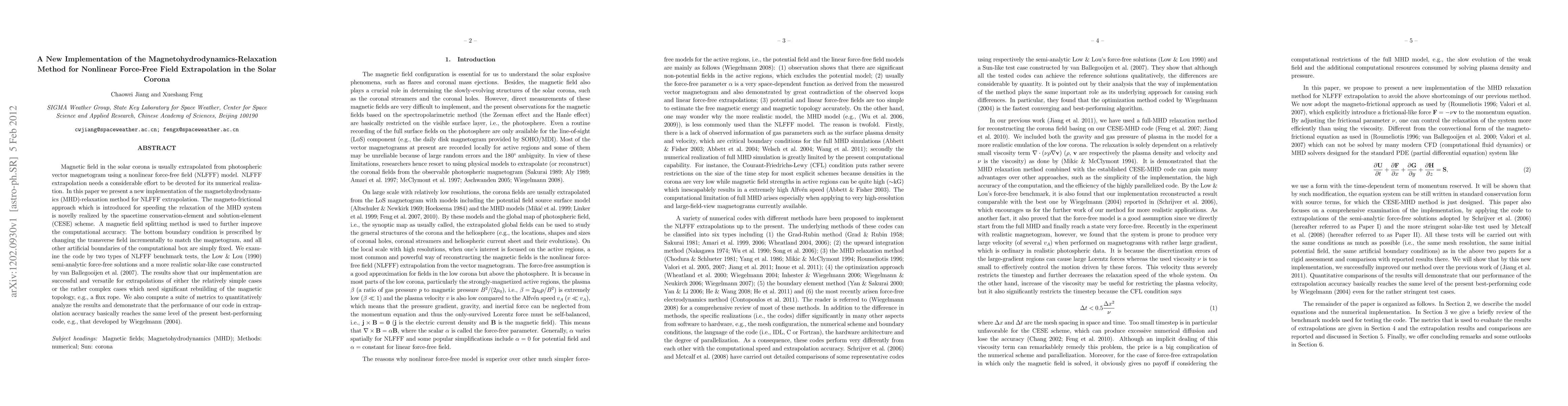 This paper presents a new magnetohydrodynamics (MHD)-relaxation method for nonlinear force-free field (NLFFF) extrapolation in the solar corona, utilizing the CESE scheme and a magnetic field splitting method for improved accuracy. The method is validated through benchmark tests, showing comparable performance to existing best-performing codes.