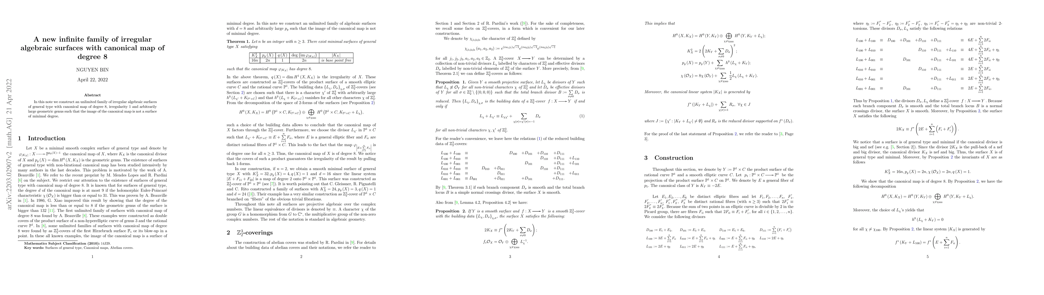 This paper constructs an infinite family of irregular algebraic surfaces of general type with a canonical map of degree 8, irregularity 1, and arbitrarily large geometric genus, where the image of the canonical map is not a surface of minimal degree.