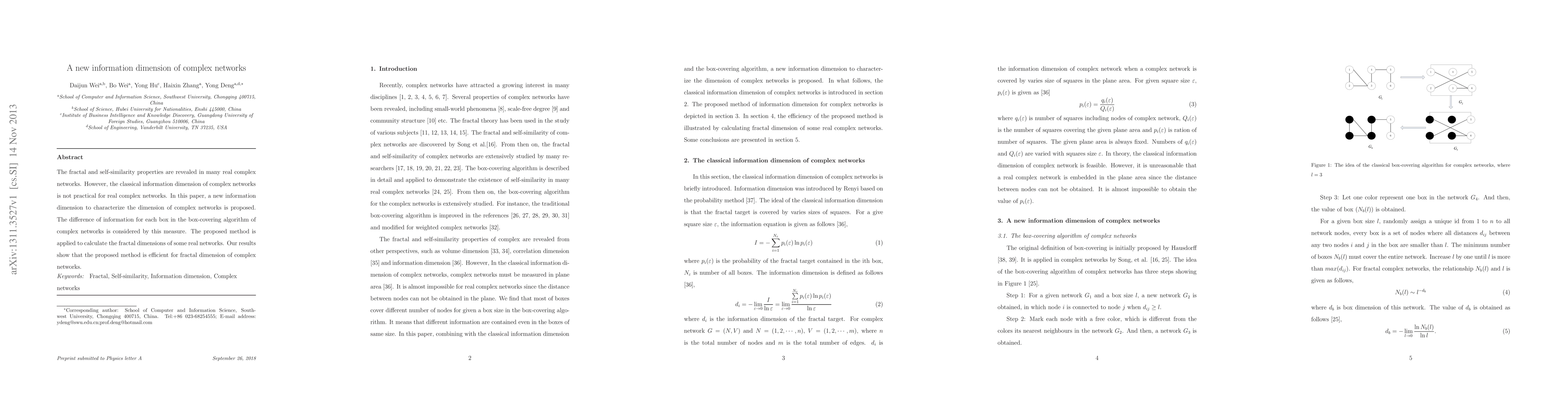 This paper introduces a novel information dimension method to characterize the fractal and self-similarity properties of complex networks, addressing the limitations of classical dimensions. The new method, based on the box-covering algorithm, effectively calculates the fractal dimensions of real networks, demonstrating its practical efficiency.