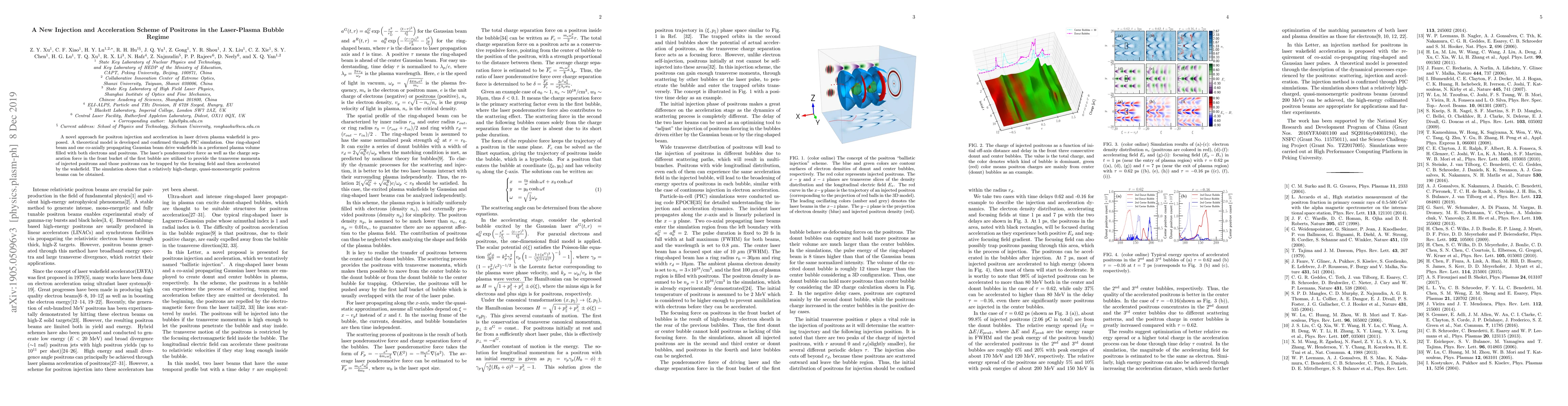 This paper proposes a novel method for injecting and accelerating positrons using laser-driven plasma wakefields, confirmed via PIC simulations. The scheme employs a ring-shaped and a co-axial Gaussian beam to create wakefields in a preformed plasma, leveraging laser forces and charge separation to achieve high-charge, quasi-monoenergetic positron beams.
