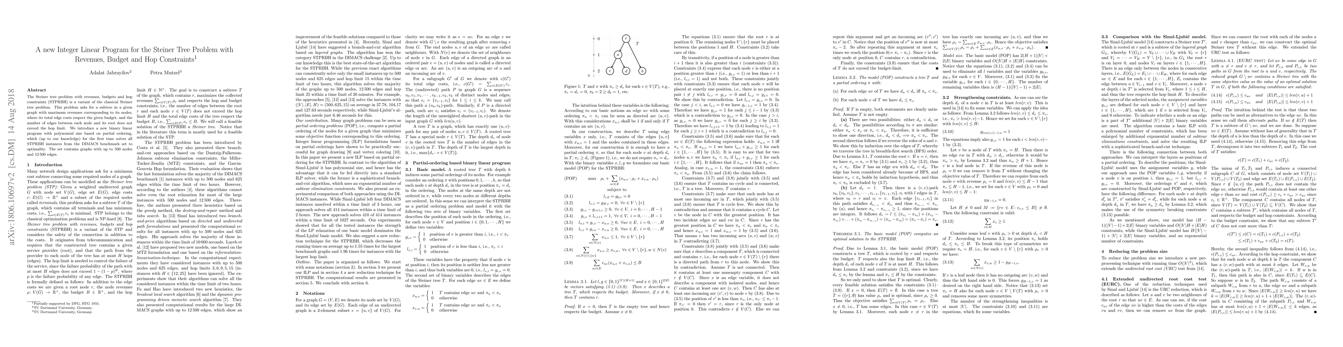 The Steiner tree problem with revenues, budgets and hop constraints (STPRBH) is a variant of the classical Steiner tree problem. This problem asks for a subtree in a given graph with maximum revenues corresponding to its nodes, where its total edge costs respect the given budget, and the number of edges between each node and its root does not exceed the hop limit. We introduce a new binary linear program with polynomial size based on partial-ordering, which (up to our knowledge) for the first time solves all STPRBH instances from the DIMACS benchmark set to optimality. The set contains graphs with up to 500 nodes and 12500 edges.