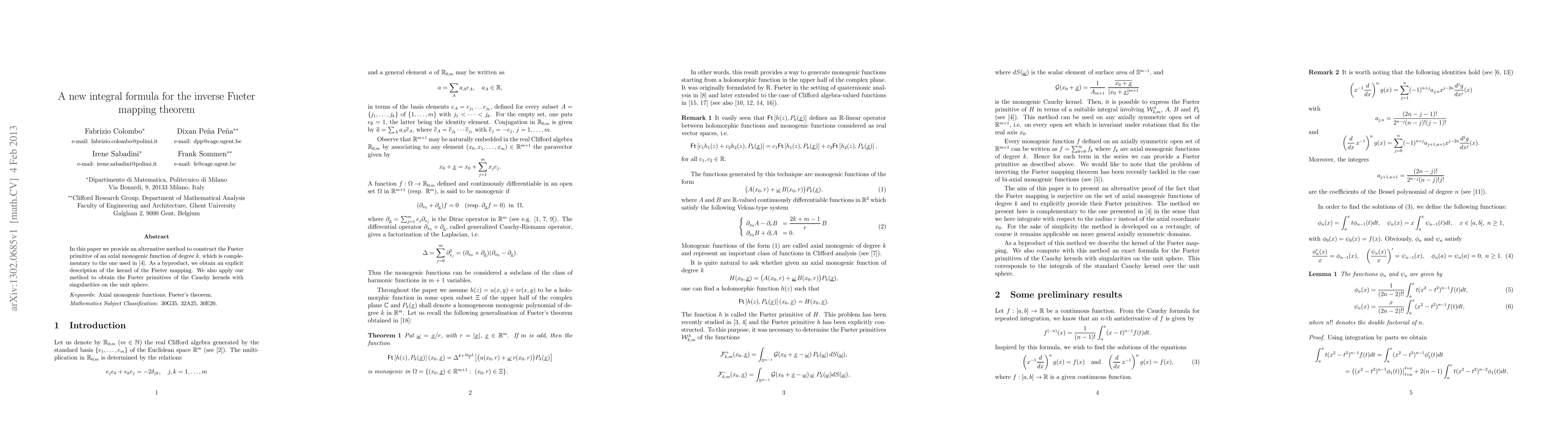 This paper introduces a new integral formula for constructing the Fueter primitive of axial monogenic functions, offering an alternative to existing methods. It also provides an explicit description of the Fueter mapping kernel and applies the method to derive Fueter primitives of Cauchy kernels with singularities on the unit sphere.